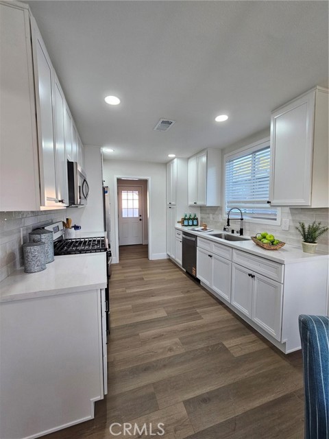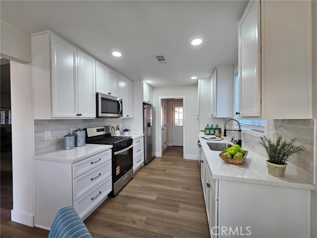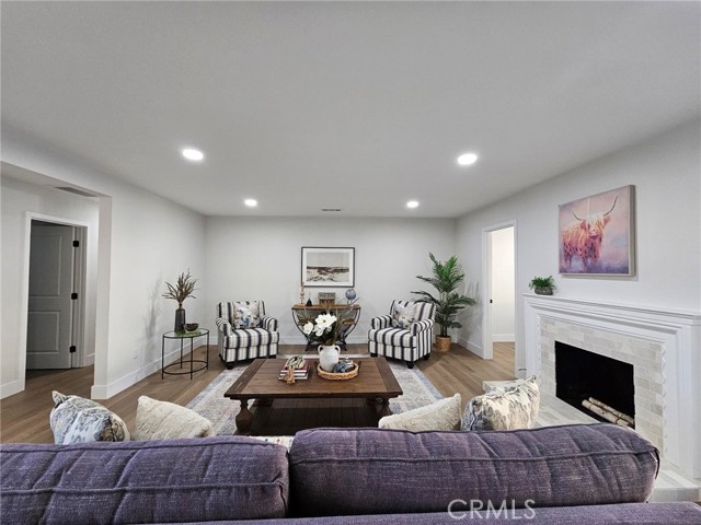 **PRO PHOTOS COMING **Beautifully RENOVATED 3-bedroom, 2.5-bathroom home with approximately 1539 square feet of living space and situated on spacious 6298 square foot lot located in a desirable Glendora neighborhood. The updated kitchen has new cabinets, sleek new counter tops, tile backsplash, new stainless-steel appliances, and stylish new plumbing and lighting fixtures. Both the hall and primary bathroom have new vanities, and fixtures with custom tile work. Other features include a new HVAC system, new energy efficient vinyl windows, new roof, freshly painted interior and exterior, luxury flooring in common areas and bedrooms, new upgraded electrical panel, and indoor laundry for your convenience. The living room has a decorative fireplace and French doors leading to the outdoor patio with a built in BBQ. Off the living room is an additional bonus/flex room perfect for office, gym, etc. There is a detached 2 car detached garage and long driveway with plenty of off-street additional parking. The enclosed backyard has a covered patio, spacious lawn area, perfect for outdoor fun and entertainment. Detached two car garages and spacious yard offers possible ADU potential. Buyer to verify all building codes and ADU guidelines with the city.