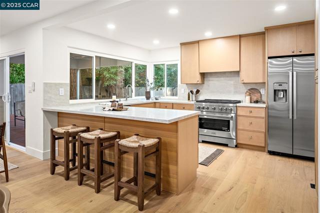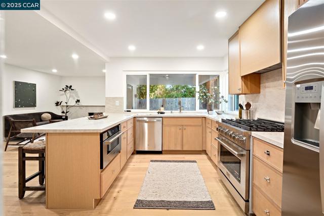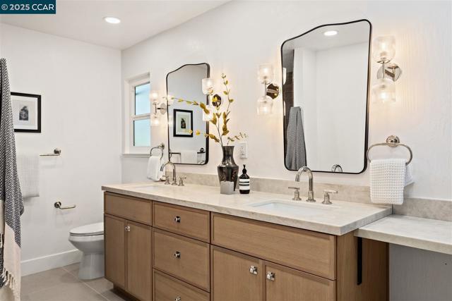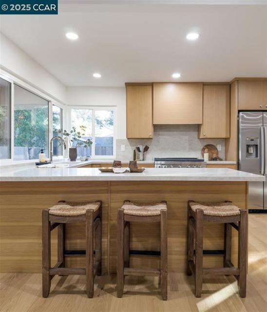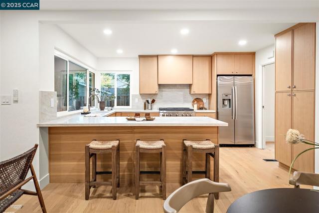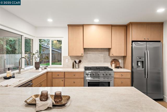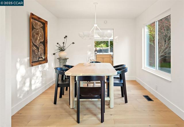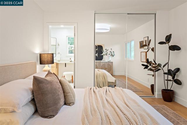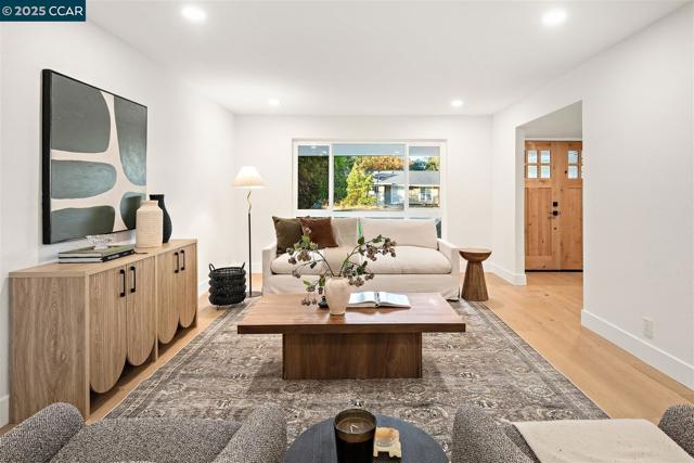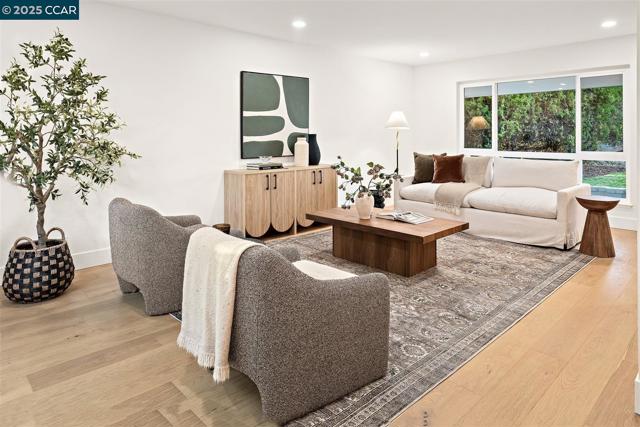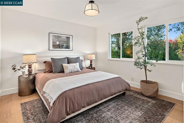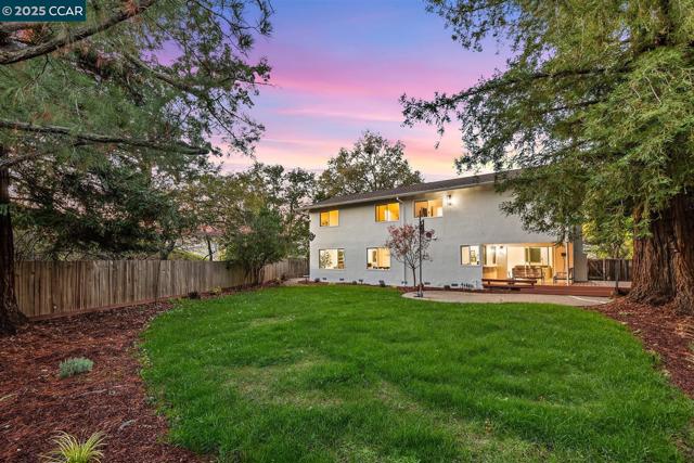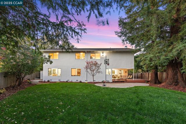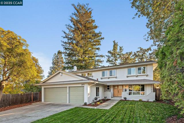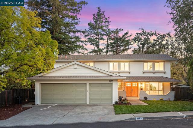 Nestled at the base of Sugarloaf Open Space sits this beautifully updated 5 bedroom, 3.5 bath home. At the end of the lane is this private oasis with a lush green lawn, covered front porch & new wooden double doors. Beautiful wide plank LVP throughout the home & natural light gushes through the new double pane windows. A large living space to the right enters open into the dining room with a contemporary, white chandelier. The first floor powder room adorned with playful floral wallpaper sets the tone for the rest of the updated bathrooms. A cozy family room with a fireplace & sliders to the outdoor covered patio is the perfect place to relax. The stunning kitchen with quartz countertops & 6 burner stove, elongated breakfast bar & tile backsplash is the heart of the home overlooking the oversized private backyard. Upstairs there are 5 spacious bedrooms, two with ensuite bathrooms. Unique, designer light fixtures in each bedroom gives the opportunity to bring your own personality into the walls. The large primary suite boats two closets, large walk-in shower, double sinks & vanity seat. The true gem of this home is the location. Spend summers at Livorna Pool Club, attend Alamo schools, play at Rudgear Park & be within close proximity to downtown Walnut Creek & Alamo.