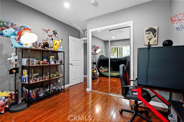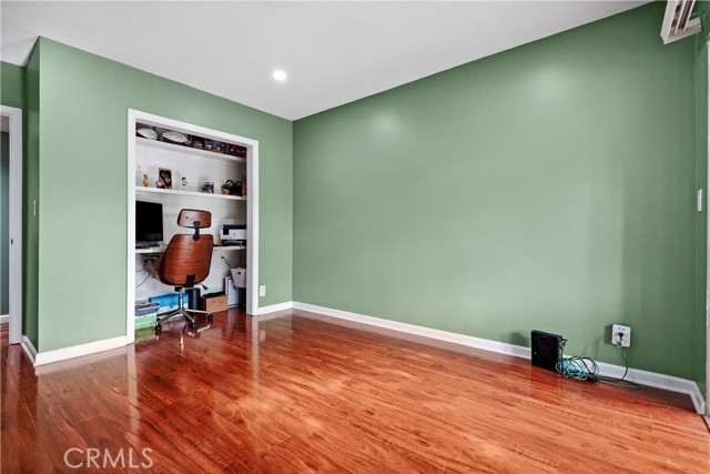 Incredible opportunity to own a spacious and beautifully updated 3-bedroom Sherman Oaks condo in the coveted Hesby Oaks School district and one block from Ventura Blvd. This stylish first-floor end unit is situated in an enchanting central courtyard surrounded by lush, mature landscaping. Step inside to an open and inviting floorplan featuring hardwood floors, recessed LED lighting, and brand new windows. The updated kitchen showcases a breakfast-bar island, brand new stove, dishwasher and microwave. The primary bedroom includes its own private bath and walk-in closet. Two additional bedrooms offer excellent space—one with direct access to a private patio and a custom made “cloffice” (home office in a closet). Additional highlights include: newer roof, newer water heater (2019), newer HVAC (2015), two parking spaces (1 uncovered + 1 shared garage with storage), pet-friendly community, low HOA dues, 8-unit building located on a cul-de-sac. Don’t miss this rare Sherman Oaks gem just minutes to the westside, Sherman Oaks Galleria, Westfield Fashion Square, top dining, and shopping.