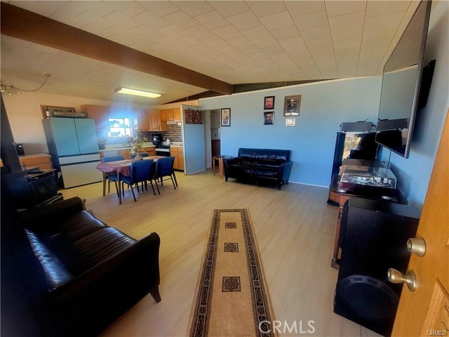 (Johnson Valley California) Desert escape, off grid retreat, artist's haven, short term rental investors, remote workers Truckers & Toy Lovers Welcome! Discover wide open space and endless potential on this 5-acre property located in peaceful Johnson Valley. Whether you're a truck driver, off-road enthusiast, or simply crave privacy and room to roam, this property is your perfect match. Plenty of space to park big rigs, RVs, trailers, and all your desert toys. Ideal for weekend getaways, off-road adventures, or building your dream desert retreat. Located near the famous King of the Hammers off-road event area Don’t miss this rare chance to own affordable acreage in the High Desert! Check out the panoramic mountain views, stunning sunsets, and brilliant star-filled nights. Just a short 20 min drive from Yucca Valley and only 1 block off the main highway 247, it’s your peaceful escape from the hustle and bustle. Inside, you'll find a bright and spacious layout featuring 3 generously sized bedrooms and 1.5 baths. The open-concept great room flows into a sun-filled kitchen, complete with a bay window in the kitchen just perfect for enjoying mountain views while cooking or doing dishes. or just staring out with a cup of hot cup of coffee. Relax on the country-style porch or entertain in your large outdoor spaces. The property includes a four-car garage with a workshop, A must see and must have.