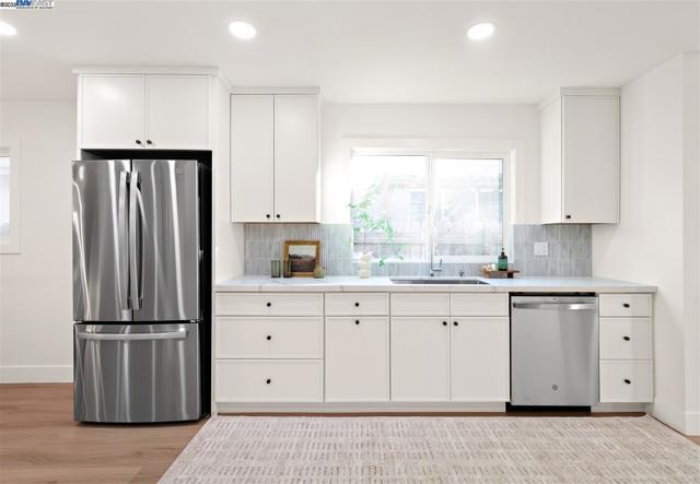 Opportunity to own a fully renovated home in the highly desirable Washington Manor neighborhood, near San Leandro’s top-rated elementary school (8/10 rating)! This beautiful home offers a modern open layout that seamlessly connects the spacious living room, dining area and kitchen — perfect for everyday living or entertaining guests. The kitchen features new cabinetry, quartz countertops and stainless steel appliances, complemented by new flooring, fresh interior and exterior paint and modern light fixtures throughout. Both bathrooms have been tastefully updated and the home offers generously sized bedrooms along with flexible space for a home office or creative corner. Step outside to a peaceful backyard to unwind or host weekend gatherings. Energy-efficient solar panels add even more value, helping you enjoy comfort and savings year-round. Set in a prime location near Madison Elementary, this home offers unbeatable neighborhood convenience. Enjoy being just minutes from the San Leandro Marina with its dog park, golf course and walking trails as well as nearby shopping and dining options. Commuters will appreciate easy access to I-880 and I-238 for a quick connection across the Bay. Combining modern comfort, location and lifestyle, this Washington Manor gem is ready to move in!