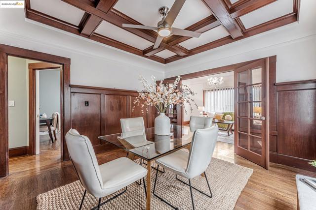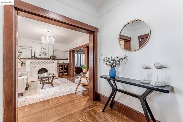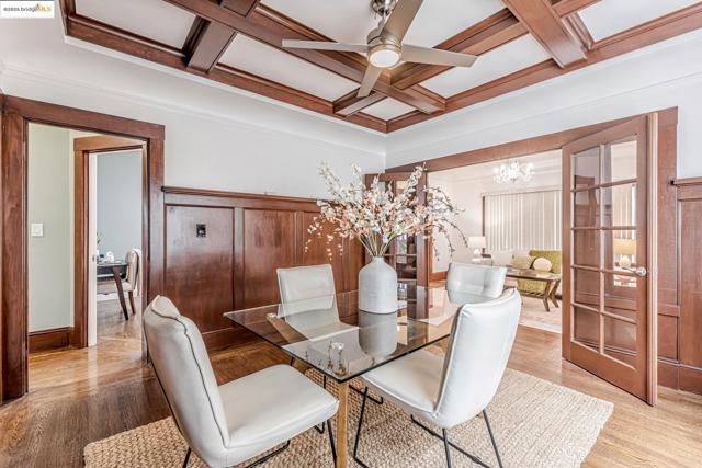 This charming and thoughtfully updated Craftsman is located in the heart of the very sought after NOBE neighborhood and is close to everything; Ashby Bart, Berkeley Bowl, Temescal, Rockridge, Bushrod, 24 & 580 Freeways. 91 walk score, 100 bike score. Original oak floors, built-ins, trim, baseboards, wainscoting and coffered ceiling, blend perfectly into the updated kitchen, bathrooms, dual pane windows and newer roof. Enjoy your morning coffee in the covered/fully enclosed front porch. Formal dining room, living room and foyer are the heart of the home, and the 3 bedrooms bask in the southern facing sun. The 2 car detached garage tucked at the back of the property is ripe with ADU potential. Freshly painted inside and out.