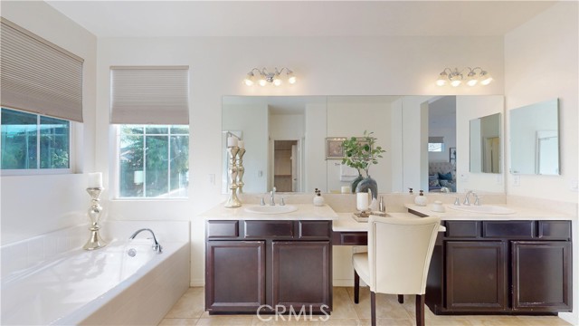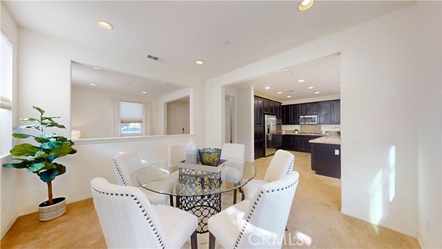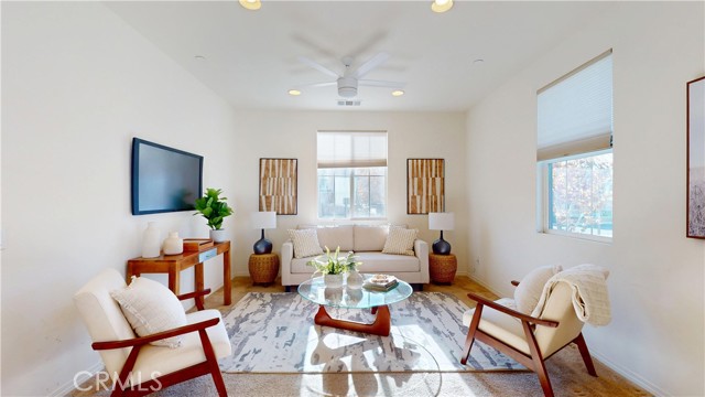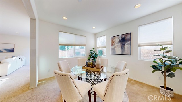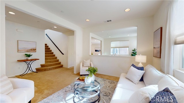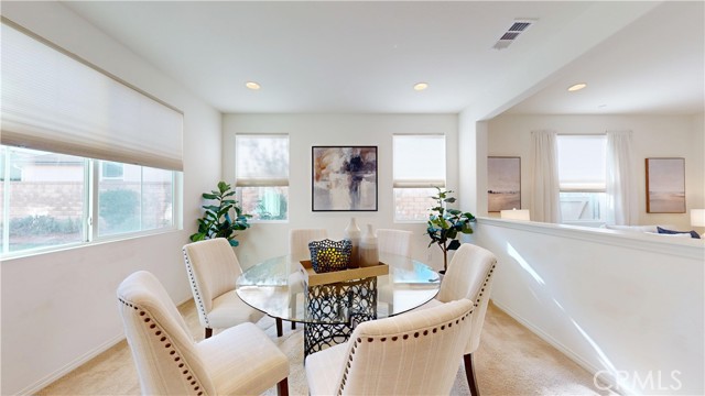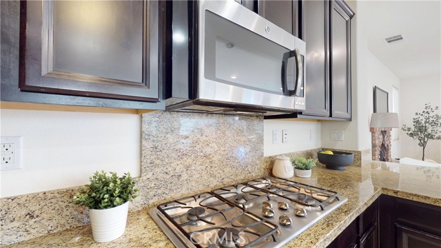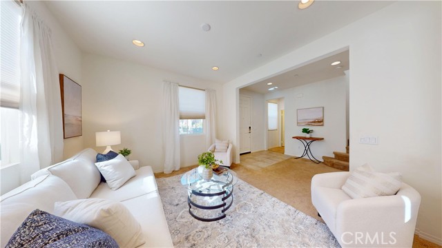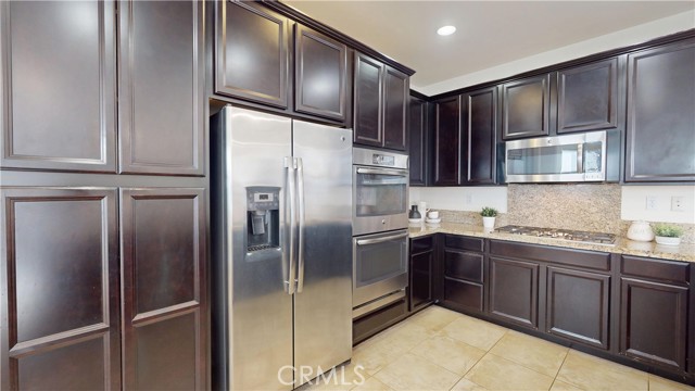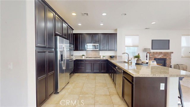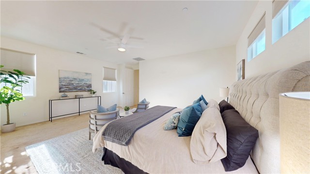 Welcome to this beautifully upgraded home located in the highly desirable West Creek community of Valencia. This residence offers approximately 2,887 sq. ft. of thoughtfully designed living space, featuring an open-concept layout with a spacious family room, a modern fireplace, and abundant natural light. The gourmet kitchen includes granite countertops, a custom tile backsplash, a large center island, stainless steel appliances, and generous cabinet storage. The first floor includes a full bedroom with an adjacent bathroom, ideal for flexible living arrangements. The upper level features a large loft, two secondary bedrooms with a shared dual-vanity bathroom, and a private primary suite. The primary suite offers dual walk-in closets, a soaking tub, a separate walk-in shower, and dual vanities. Interior upgrades include tile flooring, plantation shutters, crown molding, recessed lighting, and a tankless water heater. The home is equipped with a paid solar system and an EV charging outlet. The oversized laundry room provides additional storage and functionality. The exterior features well-maintained landscaping and excellent curb appeal. The backyard offers a covered patio with recessed lighting, a ceiling fan, paver flooring, and mature greenery, creating a comfortable outdoor retreat. The property also includes a two-car garage and an additional parking space next to the garage. Residents enjoy access to nearby parks, trails, community amenities, and top-rated schools. This home offers a blend of comfort, style, and convenience in one of Valencia’s most sought-after neighborhoods.