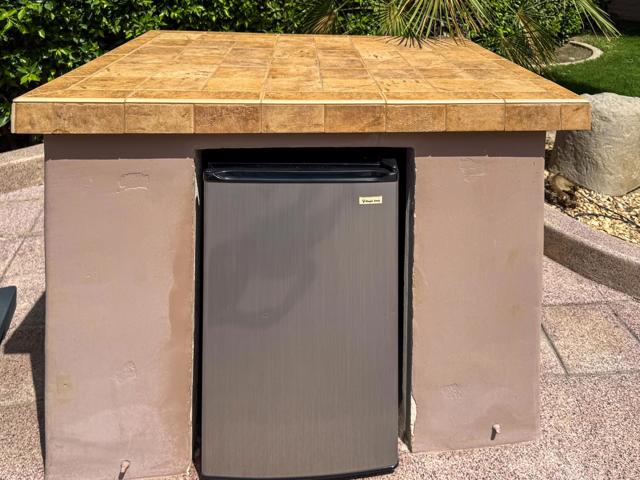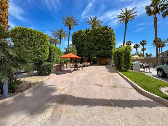 Outdoor Resort Indio is a Class A Motorcoach resort. This is an RV lot. Discover the perfect larger pie-shaped perimeter lot in a peaceful cul-de-sac, offering a tranquil retreat with endless possibilities for customization. Whether you dream of building a spacious casita or prefer to embrace the open grassy rear area for added relaxation and entertainment, this lot provides the flexibility to design your ideal outdoor living space. Towering mature trees provide natural shade, allowing you to enjoy the outdoors comfortably with just your awning extended.Designed for both luxury and convenience, this well-appointed lot includes a built-in BBQ with a side burner, refrigerator, sink, and ample storage. Elegant night uplighting enhances the ambiance, while the inviting seating area features a dining table with four chairs, two umbrellas, and a cozy fire pit--perfect for evening gatherings under the stars. Whether entertaining guests or enjoying peaceful solitude, this lot is a rare opportunity to experience resort-style RV living at its finest.