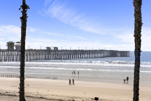 Experience breathtaking front-row coastal living at 400 N The Strand #27—a beachfront gem in the coveted San Miguel III community. This rare ground-level unit offers no-stairs access, making beachside living both luxurious and effortless. Enjoy panoramic white water ocean views and the soothing sound of waves from the comfort of home! Inside, the condo features fresh paint and tastefully updated bathrooms, creating a clean and modern coastal vibe. The open-concept living space is filled with natural light and opens directly onto an ocean-view patio—perfect for dining al fresco or soaking in the sunsets over the Pacific. As evening falls, take in the magical sight of the Oceanside Pier glowing against the night sky—an unforgettable view right from your living room or patio. The spacious primary bedroom features a walk-in closet and dual sink vanity. Additional highlights include in-unit laundry, a cozy fireplace, and two assigned underground parking spaces in a gated garage with elevator access. Ideally located just a short stroll from the Oceanside Pier, marina, and vibrant downtown, this home puts you steps away from Oceanside’s best dining, coffee shops, and boutique shopping. San Miguel III is a well-maintained beachfront community featuring two spas, beautifully landscaped grounds, and multiple access points to the sand. Whether you're looking for a peaceful beachfront escape or an unbeatable location to enjoy all that Oceanside has to offer, this is your chance to own a front-row seat to Southern California’s iconic coastline.