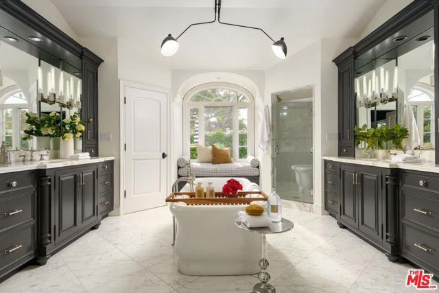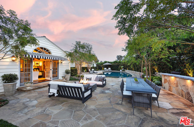 Luxe, recently updated, 4-bed, 4.5-bath single-level estate blends classic elegance with Ralph Lauren-inspired sophistication in Montecito's coveted Cold Spring School district. Exceptional craftsmanship is evident at every turn, from the exquisite millwork to the honed marble kitchen and baths, modern lighting, and French doors all contributing to a home that offers a truly welcoming retreat. The handsome family room impresses with vaulted ceilings, custom built-ins, and an open flow to the gourmet kitchen, where an oversized island, fantastic appliances, and coffered ceiling create a chef's dream. The formal living room, featuring a marble fireplace and window seat overlooking the pool, spa, and manicured gardens, complements the adjacent formal dining room, private office, and versatile attached garage/media room, enhancing livability. The primary suite boasts a spa-like ensuite bath, walk-in closet, ample storage, French doors, and vaulted ceilings. Nestled behind double gates, the private grounds offer stone terraces, lush lawns, a sparkling pool, built-in outdoor kitchen, vibrant hydrangeas, and a stately tree-lined motor court. Quintessentially Montecito, this nearly 3,900-square-foot residence offers effortless luxury and refined comfort. It is within easy reach of both Lower and Upper Villages.