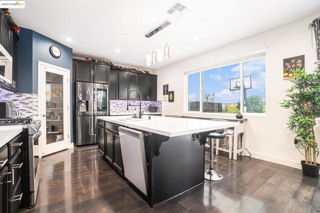 NEWER CONSTRUCTION! 5 bedroom, 3 bathroom home with views of the Delta. Full bed/bath on entry level. Kitchen features quartz countertops, center island, stainless appliances, gas range, dishwasher and refrigerator. Open floor plan with family rooms on both levels. Fully landscaped, 3 car garage, indoor laundry, updated lighting and owned solar! No rear neighbors and easy access to public transportation and new highway 4 bypass.