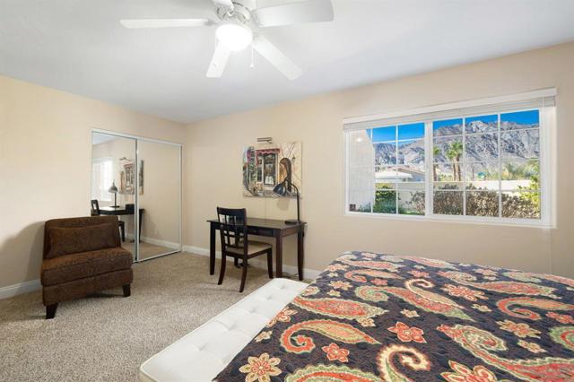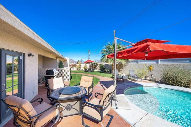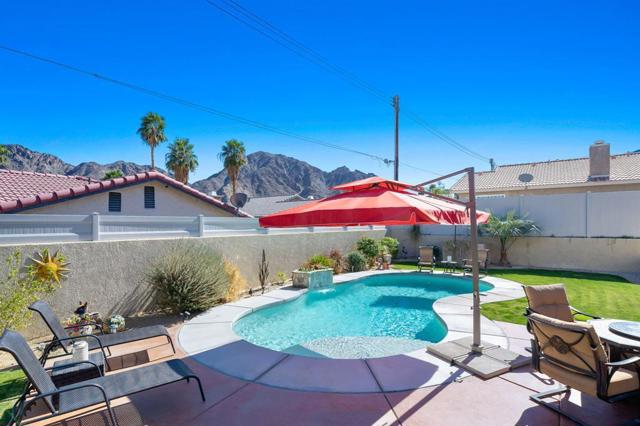 Welcome to your desert haven in the heart of La Quinta. Set on a rare corner double lot just minutes from Old Town, this thoughtfully updated 3 bedroom, 2 bath home blends everyday comfort with effortless style.Step inside to an inviting living space featuring travertine floors, French doors, and a cozy fireplace that anchors the room. The kitchen is finished with granite countertops perfect for weeknight dinners, weekend baking, and hosting friends.The spacious primary suite includes custom California Closets and added cooling comfort, while the home's main AC system was rebuilt like new in 2022.Out back, resort style living becomes part of your everyday routine. Enjoy a sparkling solar heated pool, lush landscaping, and generous space for outdoor dining and lounging. A dedicated enclosed dog play area with low maintenance turf makes it easy for pets (and kids!) to enjoy the outdoors.An air conditioned garage with storage cabinets and epoxy floors adds even more flexibility ideal for hobbies, a home gym, or extra storage.With world class dining, shopping, parks, and golf just minutes away, this is the perfect place to settle in and enjoy the best of La Quinta living year round.