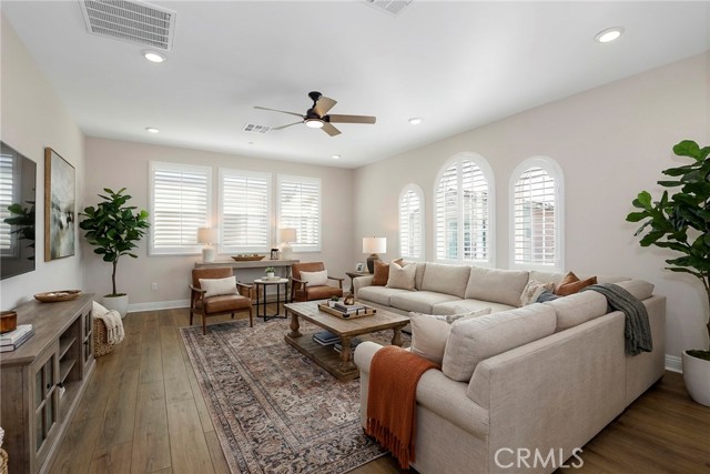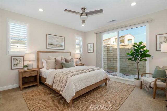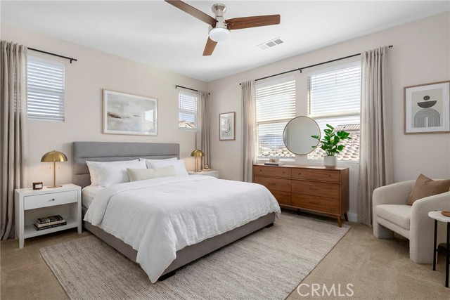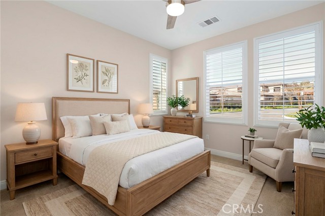Welcome to this stunning 3 Bedroom, 3 Bathroom plus Loft home on a corner lot in the Galloway Gated 55+ Community! 2 bedrooms on the main floor and upstairs you will find a large loft plus additional bed and full bath, just perfect for guests! This perfect floor plan features a luxurious atmosphere for entertaining with a spacious living and dining room that open to the gourmet kitchen featuring beautiful stainless steel appliances, beautiful granite countertops, white kitchen cabinets and a spacious center island with seating. The indoor laundry room is conveniently located on the first floor near the bedrooms. The light and bright living room has been tastefully upgraded with luxury tile flooring and recessed lighting! The downstairs primary suite is spacious, complete with a large walk-in shower, dual sinks, huge walk-in closet with gorgeous and functional built-in storage features. In addition, there is a second bedroom and an additional bath on the main floor as well as a large bedroom and another bathroom plus a loft on the second floor! Upstairs, enjoy a spacious loft that is incredibly light and bright, all windows have custom plantation shutter and the flooring is upgraded laminate flooring. As a bonus, included in the sale is washer, dryer and refrigerator. Enjoy resort-style living with access to a fabulous clubhouse overlooking the Santa Clarita Valley! Enjoy the community gym, sparkling pool, and spa! Explore the adjacent Santa Clarita Senior Center or take advantage of nearby Golden Valley Park and dog park, basketball court and picnic areas! This truly turnkey home.
