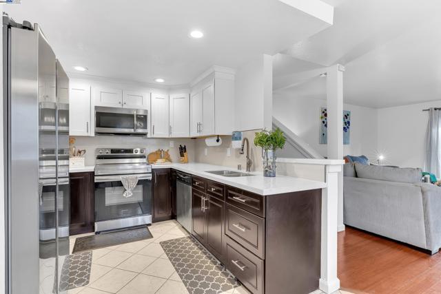Boasting 1,350 sqft. this oversized 2 bedroom, 2 bath condo is located in the heart of Fremont. This ground level, corner unit offers a resort like atmosphere, situated right in front of the pool and sauna. Enjoy amenities such as swimming, sunbathing, and other relaxing features. Residents can also enjoy well maintained green spaces and a beautifully manicured lawn throughout the community. Ideally located just 6 minutes from Fremont BART and close to highways 880, 680 & 84. Easy access to Lake Elizabeth Park and convenient shopping options like Target, Ross, & CVS (all 3 mins away), as well as numerous restaurants, including Chili’s (3 mins away). Fremont Hospital is also only 4 mins away. The condo features a split-level layout. Both generously sized bedrooms include walk-in closets; the owner’s suite has its own bathroom, and a 2nd full bathroom is located in the hallway. The kitchen, dining area, and living room are located downstairs, offering an open and inviting space complete with a cozy fireplace and a large sliding door leading to the balcony. The unit also offers in-unit laundry for added convenience. The building provides an elevator for easy access from the gated garage or lobby. Additional benefits include an assigned underground parking space & large storage unit.