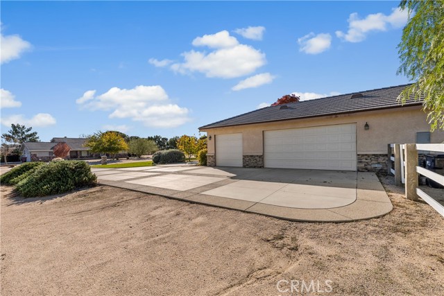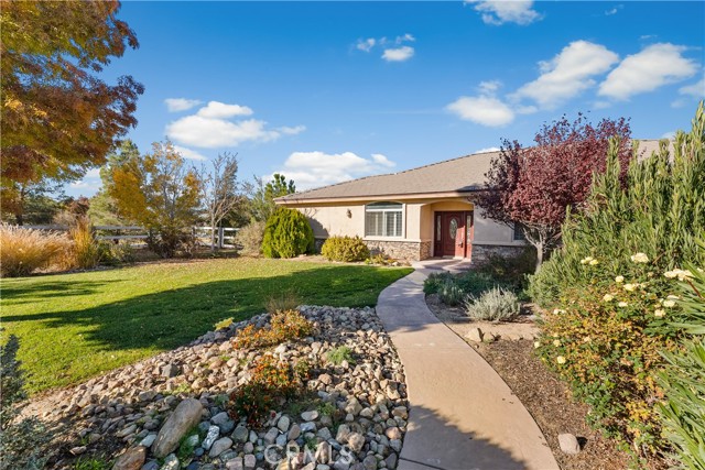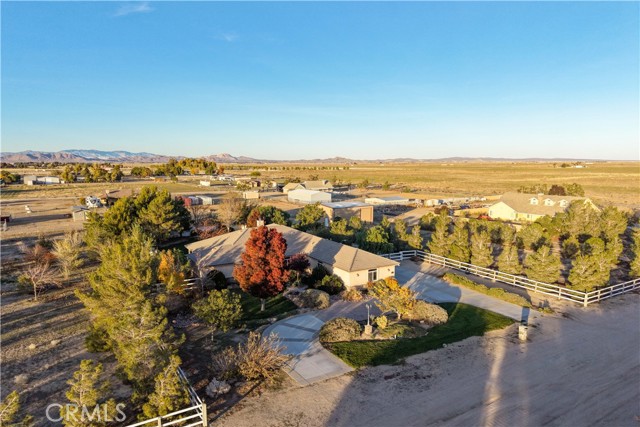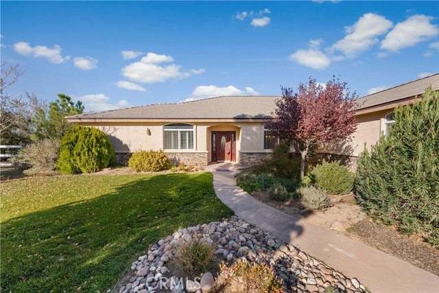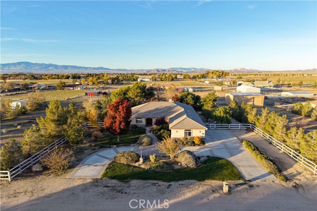Discover peaceful living in this impressive Antelope Acres estate set on 2.5 acres. Offering over 3,000 sq ft of comfortable, well-designed space, this property features 5 bedrooms, 3 bathrooms, a dedicated office, and an oversized 3-car garage. The standout feature is the massive 40x40 RV garage/workshop, equipped with two roll-up doors (16'x10' and 12'x10') and its own private bathroom—ideal for RV storage, car enthusiasts, hobbyists, or a full-scale workspace. Inside, hardwood flooring welcomes you through the entry, formal dining room, and office. The spacious family room offers high ceilings, a cozy fireplace, and soft carpeting. The kitchen is well appointed with granite countertops, stainless steel appliances, abundant cabinetry, tile flooring, pendant-lit breakfast bar, and a walk-in pantry. The primary suite provides a relaxing retreat with an upgraded bathroom featuring custom tile, a soaking tub, and a separate walk-in shower. All additional bedrooms are generously sized with carpet and plantation shutters and ceiling fans. The backyard is built for enjoyment and entertaining with a large covered patio, built-in BBQ, fire pit, and a spa under the gazebo. The vinyl fencing adds privacy, and the property is enhanced with a greenhouse, fruit trees, and even a zip line. With space, functionality, and exceptional workshop/RV amenities, this one-of-a-kind property offers the perfect blend of country living and modern convenience. A rare Antelope Acres find!