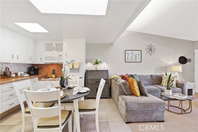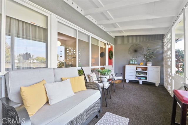 Gorgeous Greenbelt Retreat & Outdoor Charm! Discover a beautifully appointed 1-bedroom, 1-bath retreat perfectly positioned on a wide, tranquil greenbelt. From its lush garden setting to its thoughtful interior enhancements, this move-in-ready standout is one of Leisure World’s most inviting offerings. A beautifully landscaped front garden welcomes you with jasmine, hydrangeas, azaleas, and camellias—creating a colorful, fragrant entry that truly sets this home apart. The spacious front carpeted patio is an absolute highlight, featuring an included outdoor loveseat and wonderful views of the open green belt, your own private, front-row seat to peaceful outdoor living. Step inside to a bright, updated interior with screened window treatments and fresh paint throughout. Attractive ceramic tile flooring runs seamlessly through the living room, kitchen, bathroom, and bedroom, giving the home a clean, modern, and cohesive feel. Skylights in the kitchen and bathroom flood the space with natural light, adding to the home’s warm and airy ambiance. The kitchen is designed for both convenience and style, offering all-electric built-in appliances—including refrigerator, stovetop, microwave, dishwasher and single wall oven. A versatile kitchen island (included!) adds extra storage and comfortable counter seating, while the four-seat wood dining table provides an inviting space for meals and gatherings. A mini- split heating and A/C system ensures year-round comfort. Additional perks include Carport parking located just steps from home. This ideal location places you close to the Aquatic Center, Amphitheater, Golf Course, Clubhouse, and community offices. Extra on-site conveniences—including a library, bookstore, credit union, Health Care Center, pharmacy, café, and post office—complete the experience, all within a secure, guard-gated community just minutes from beaches, shopping, dining, and local attractions. With its lush garden entry, enhanced interior features, premium greenbelt setting, and turnkey convenience, this home delivers standout value and irresistible charm—your perfect Leisure World retreat!