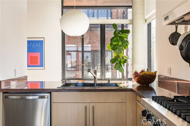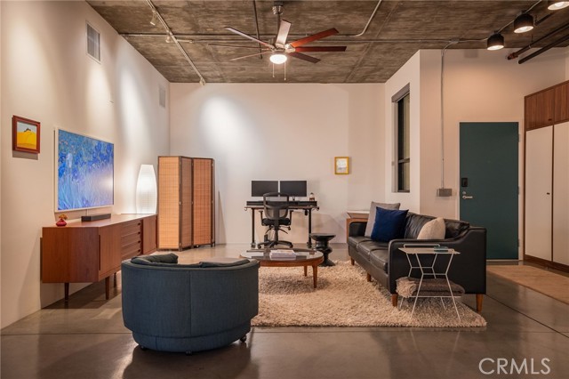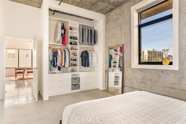 Perched on the top floor of the iconic Temple Lofts, this corner unit delivers the kind of design, light, and privacy that define true loft living. With nearly 1,800 square feet of open space, this one-bedroom home blends industrial architecture with modern upgrades in a way that feels both refined and effortlessly cool. The northwest-facing orientation is a standout feature—floor-to-ceiling windows capture treetop views, wide-open sky, and colorful sunsets, filling the space with natural light all day long. Because of its corner location within the complex (facing 9th St), you get an uncommon sense of openness and privacy that’s rare in urban living. The private balcony extends your living space outdoors, making this home feel even larger and more connected to its surroundings. Inside, polished concrete floors, soaring ceilings, exposed ductwork, and clean architectural lines set the tone. The chef’s kitchen features stainless steel appliances, granite counters, and a freestanding island perfect for cooking, hosting, or casual dining. The layout flows effortlessly between living, dining, working, and lounging moments—ideal for those who value both style and functionality. A newly added full-height bedroom wall creates a fully enclosed primary suite while preserving the loft’s open flow, enhanced by a custom floor-to-ceiling primary closet and a beautifully designed entry closet, both by California Closets. Originally built in 1927 as the Long Beach Masonic Temple, Temple Lofts is a celebrated example of adaptive reuse, where key architectural elements were thoughtfully preserved during its 2005 residential conversion. The lobby retains its original 1920s character, complete with historic tile, light fixtures, and period-appropriate detailing—setting a distinct tone the moment you enter. Modern conveniences complement the historic charm, including a fitness center, resident lounge, community deck with BBQs and a fire pit, secured guest parking, and on-site management. Unit 519 also includes a private storage cage (conveniently located at the entrance of the storage room) and two assigned side-by-side parking spaces for everyday ease. Located in the heart of Long Beach, you’ll have easy access to the city’s best dining, coffee shops, farmers market, boutique fitness studios, entertainment, arts, and the waterfront—making this home an ideal landing spot for those who want space, style, and a connected urban lifestyle.