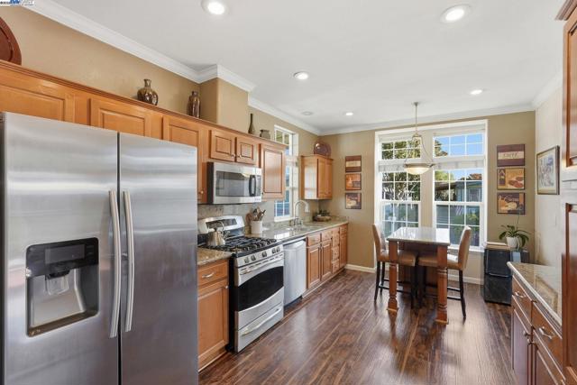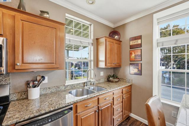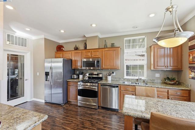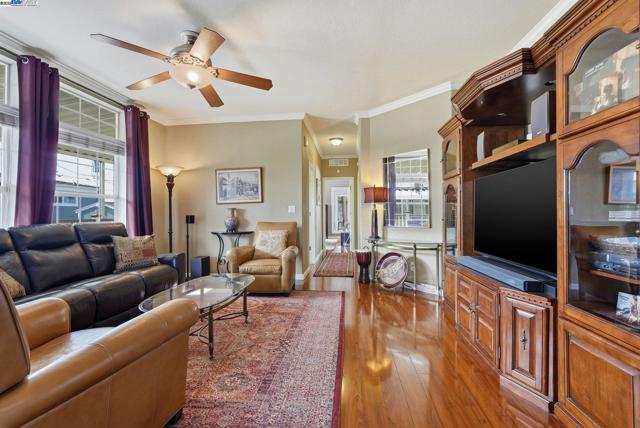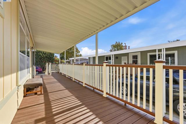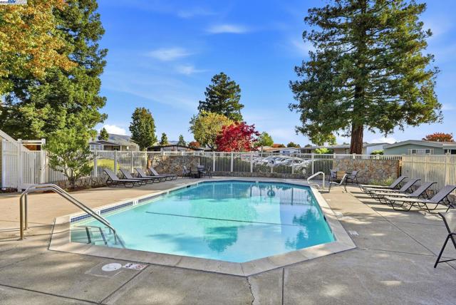 Located in a desirable and well-kept senior community, this beautifully updated 2004 model offers 1,380 sq ft of move-in-ready living space. Some furnishings may remain. The inviting floor plan features a living room with nine-foot ceilings and crown moulding, a sunny formal dining room, and an office or optional third bedroom. The gorgeous kitchen includes granite counters with an island, stainless steel appliances, a 5-burner gas range, refrigerator, and microwave. The large primary suite offers a walk-in closet with organizer, and an ensuite bathroom with a stall shower and separate soaking tub. Enjoy a spacious yard with a large patio and garden area. Additional highlights include a full-length two-car carport with two storage sheds, a dedicated laundry room, and a Trex deck with a gated patio. Interior upgrades include dual-pane windows, luxury vinyl tile flooring, and window blinds throughout. Central gas heating and AC ensure year-round comfort. Don’t miss this opportunity! Fireplaces: NO