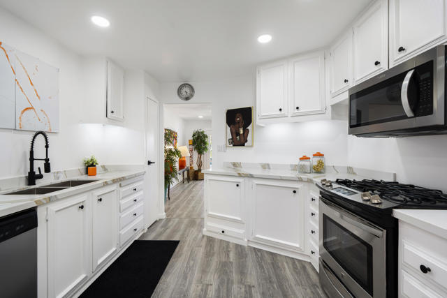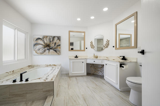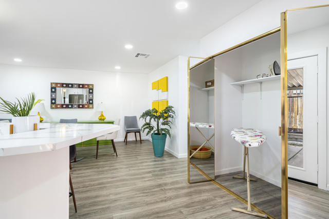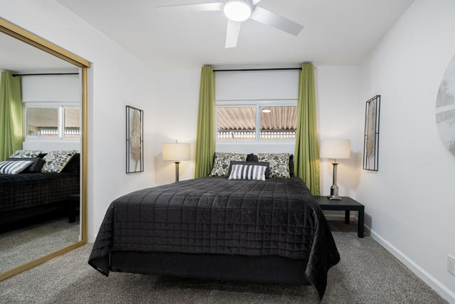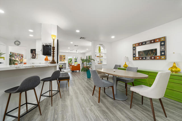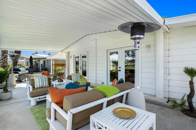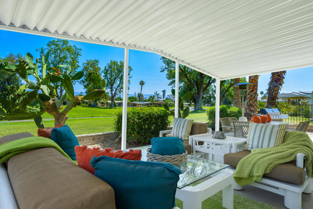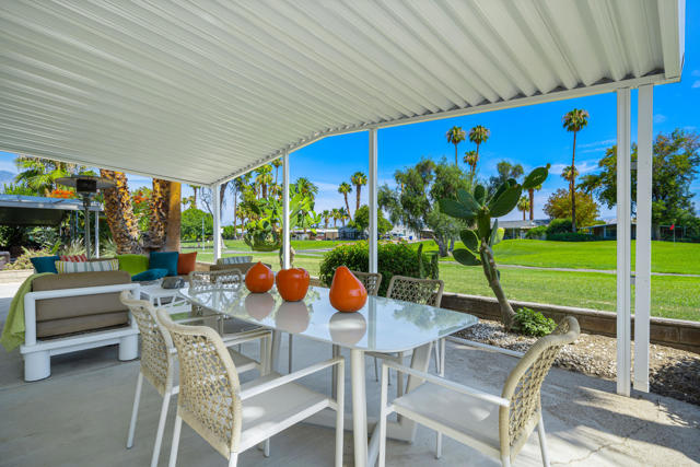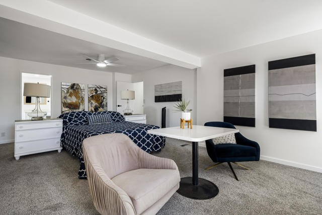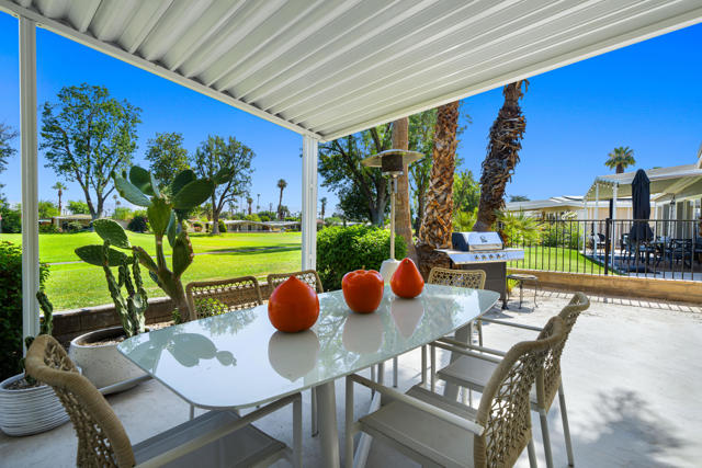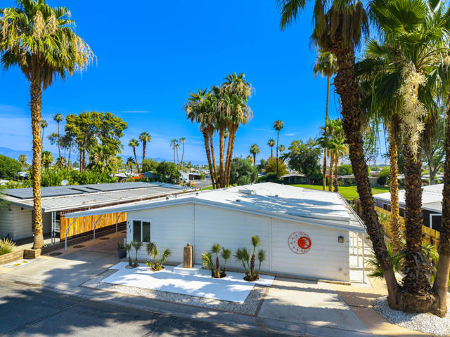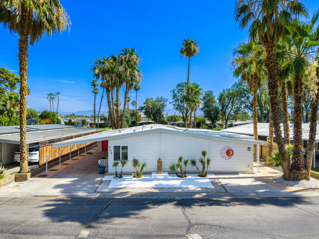Welcome to 427 Calle Madrigal, a stunning mid-century inspired home located in the highly desirable Date Palm Country Club of Cathedral City. Offered turn-Key furnished, this beautifully updated 3-bedroom, 3-bathroom residence spans approximately 2,200 square feet and offers a rare combination of style, function, and breathtaking views of the golf course and tranquil pond. The main house features two spacious bedrooms and two fully renovated bathrooms, while the attached private casita includes one bedroom, one bathroom, its own updated kitchen, private entrance, and a separate mini-split HVAC system--perfect for guests, extended stays, or as a private rental. The casita presents a fantastic opportunity to generate additional income, helping to offset the land lease cost and increasing overall affordability.Both the main residence and casita enjoy expansive fairway and water views, and each boasts its own private covered patio for relaxing or entertaining. Inside, the home is flooded with natural light thanks to all-new windows and doors, enhancing the clean lines and modern feel throughout. The main house kitchen has been refreshed with quartz countertops and updated appliances while keeping the original cabinetry, maintaining its character and charm. The casita kitchen also features quartz counters, complemented by classic white appliances for a bright, clean look. All bathrooms throughout the property have been tastefully renovated, and the entire home is offered fully furnished with stylish, comfortable pieces, making it move-in ready. A detached garage provides additional convenience and storage.Whether you're looking for a full-time residence, seasonal escape, or an income-producing opportunity, 427 Calle Madrigal offers it all with timeless mid-century flair, modern updates, and one of the best views in the community.