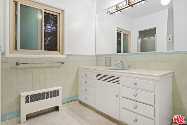 Exceptionally spacious top floor, 1 bedroom 1bathroom unit in classic mid-century California garden courtyard complex. Built in 1950 and spreads over 2.1 acres of lush landscaping, trees and quiet walkways with gardens. Unit #206 is located at the Northwest corner of this tranquil complex. A unique front entry balcony offers privacy along with a serene view of the surrounding trees and central garden. Original and newly refinished hardwood floors, and freshly painted. The bathroom has separate shower and tub. Eat in kitchen with large window and back entrance from private porch surrounded by trees. The expansive windows showcase lush landscaping, creating a peaceful treehouse-ambiance. 2-car garage. Community Laundry, but other owners have installed washer & dryers in their unit. Close to Brentwood Village, San Vicente Shops & Restaurants, Dog park & Barrington Rec Center! HOA dues include gas, water, heating, and earthquake insurance. Complex amenities include a heated saltwater pool, whirlpool hot tub, fitness center, and guest parking.