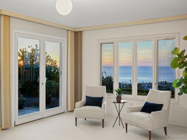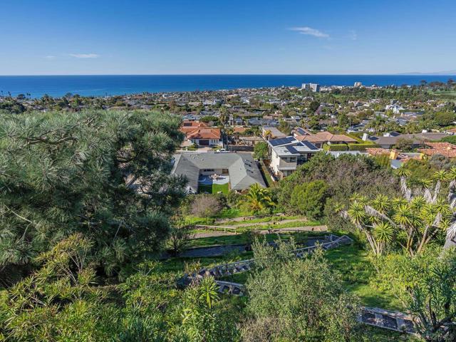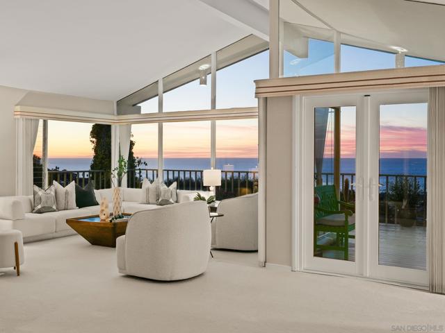 Cotton candy skies and breathtaking views set the tone for this rare offering. Perched high above the homes below, opportunities like this—an expansive half-acre lot with captivating unobstructed panoramic vistas of the ocean, Muirlands, and the Village—seldom come to market. The existing single-level home features an ideal floor plan thoughtfully designed to welcome bright natural light into nearly every room. Vast glass windows dissolve the boundary between indoors and out, inviting you to step outside and take in the full experience. Most rooms open directly to the backyard. Enjoy the mid-century charm showcased through high-beam ceilings, clean architectural lines, picture-perfect windows, a stone fireplace, and a vibrant color palette. A three-car garage plus generous driveway parking add convenience. Follow the pathway to the lower portion of the property—at over 23,000 square feet, the lot offers endless possibilities. Near to Bluebird Canyon Open Space and tucked behind a gated wall, this home is far more than meets the eye from the street.