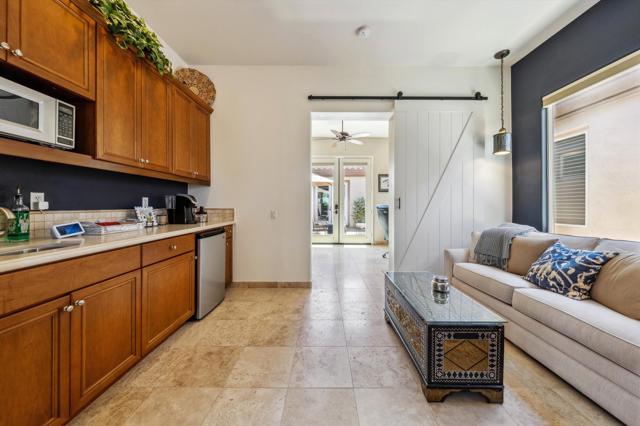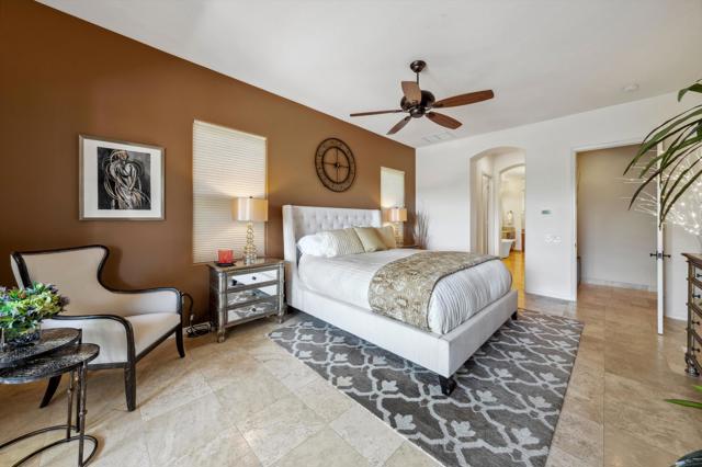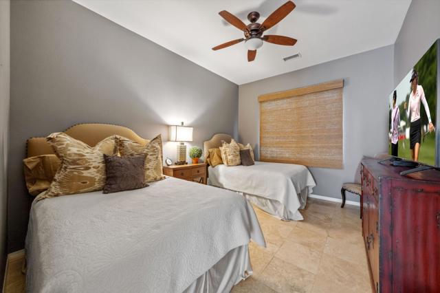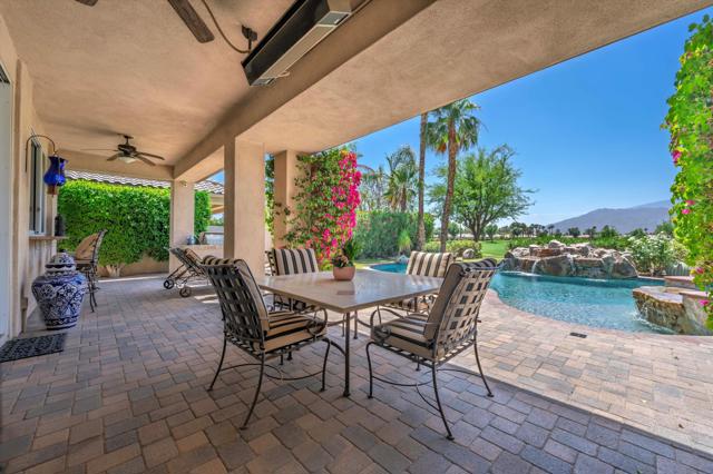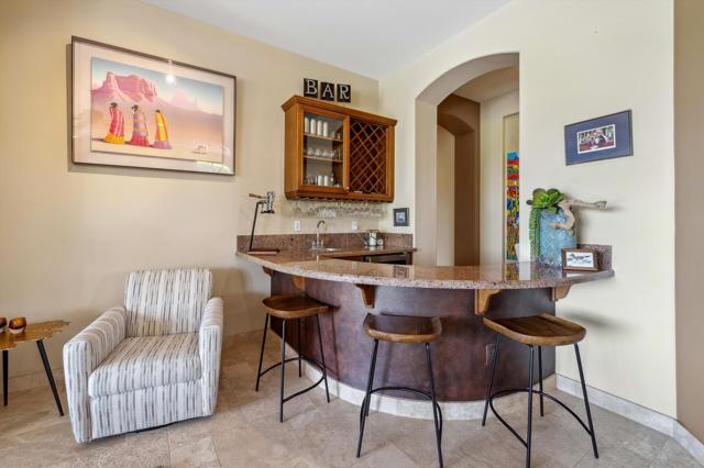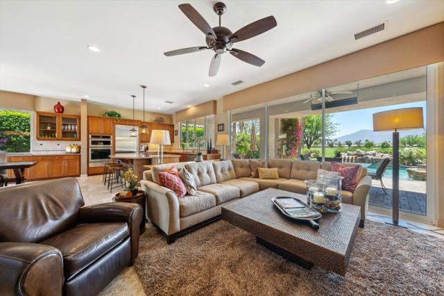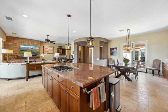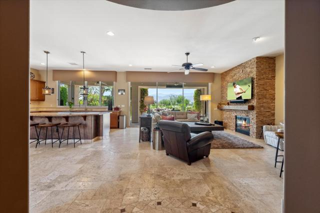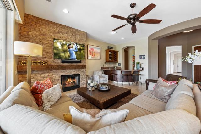 Enjoy breathtaking south-facing mountain and golf course views from this stunning home, ideally situated on the 8th tee box and 9th green of the private Weiskopf Golf Course. Offering 2,913 sq. ft. of well-designed living space, this residence features 3 bedrooms, 3.5 baths, and a private gated courtyard entry with a welcoming sitting area.Inside, the open-concept layout seamlessly connects the chef's island kitchen--complete with slab granite countertops, pull-out drawers, stainless steel appliances including a Sub-Zero refrigerator, Bosch dishwasher, and Jenn-Air microwave & oven--to the expansive great room, perfect for entertaining.The spacious primary suite captures serene backyard views and includes a luxurious bathroom with dual vanities, a walk-in rain shower, and a separate soaking tub. Additional highlights include a stone fireplace, surround sound system, garage overhead storage**, window coverings, and a water softening system.Step outside to a resort-style covered patio with a built-in gas grill, gas fireplace, mounted TV, and heater--an ideal setting to relax beside the solar-heated pool and spa while soaking in the panoramic views.New A/C January 2025, Offered furnished per inventory.