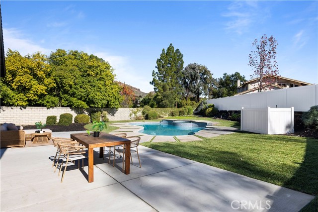 Beautifully remodeled home in the heart of West Thousand Oaks featuring stunning mountain views and located in a quiet, highly desirable neighborhood. This move-in-ready property boasts a completely renovated kitchen with brand-new appliances, fully remodeled bathrooms with new tile and modern vanities, new flooring throughout, beautiful custom carpentry finishes, and a striking modern fireplace that anchors the main living space. The backyard has been fully upgraded with new hardscaping and landscaping, and the pool has been freshly replastered and refreshed, perfect for relaxing or entertaining. A rare opportunity to own a turnkey home with exceptional upgrades, outdoor living, and scenic surroundings in one of Thousand Oaks’ most sought-after areas.