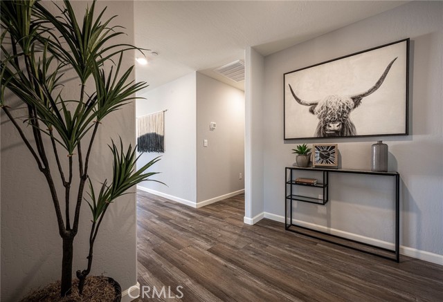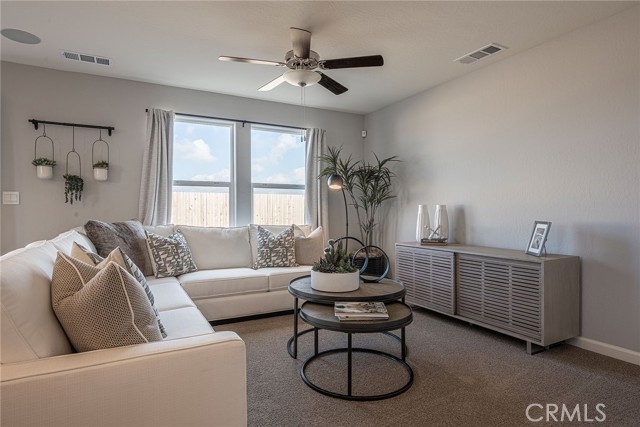 This single-story, four bedroom, two bathroom home is enhanced with 9’ ceilings and offers approximately 1,509 square feet of living space with an open-style living room and adjoining kitchen and dining area that are perfect for entertaining. The kitchen features shaker-style cabinetry, quartz countertops with backsplash, a walk-in pantry, a center island with pendant lighting and snack bar, and Whirlpool® stainless-steel appliances including a range, microwave and dishwasher. Black finishes are standard throughout the home. The main suite has an adjoining bathroom with dual vanity sinks and a large walk-in closet.