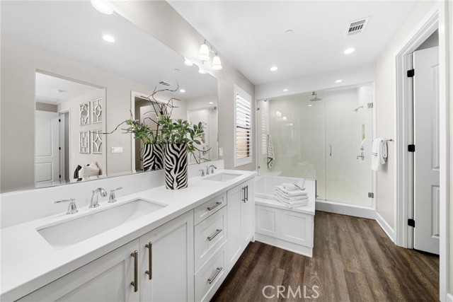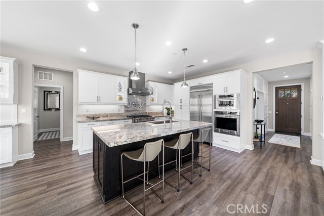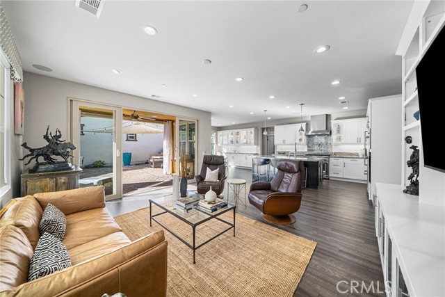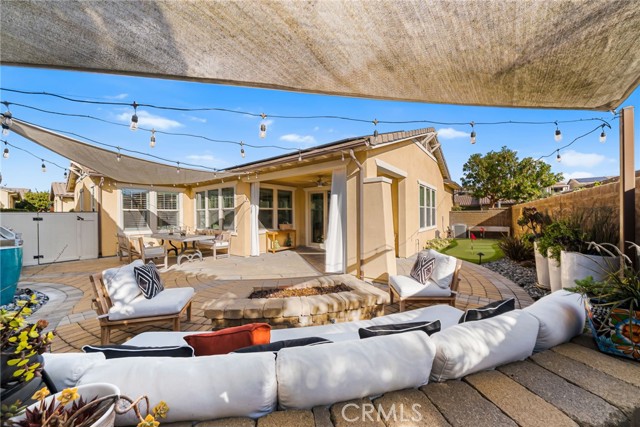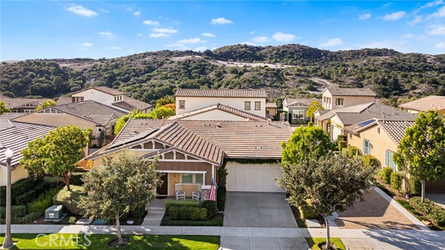 Exceptional single-level home in the vibrant 55+ community of Avocet, Rancho Mission Viejo. This stunning craftsman style home boasts over $150,000 in upgrades and a full DRIVEWAY, blending comfort with luxury and a splash of modern flare. Spanning an impressive 1,659sq.ft. this exquisite 2-bedroom residence with additional OFFICE/3rd bedroom exemplifies elegance and functionality. As you enter, you are greeted by exquisite board and batten paneling that adds a touch of sophistication to the hallway and office. The glass French doors leading into the office invite natural light, creating a bright and inspiring work environment. The thoughtfully designed office features custom built-in cabinets and a dedicated workspace, complete with a hidden compact murphy bed that provides versatility for a 3rd bedroom without compromising space. The generous guest wing boasts a spacious bedroom and a beautifully appointed guest bath featuring a walk-in shower, ensuring visitors enjoy complete comfort and privacy. Culinary enthusiasts will appreciate the gourmet kitchen equipped with sleek granite countertops, DOUBLE OVENS, a pot filler and a chef's range. Custom lighting, including under-cabinet and accent lighting in the glass cabinets, enhances the ambiance and functionality. The great room is designed for both relaxation and entertainment, featuring a custom entertainment center adorned with accent lighting. Enjoy cozy family gatherings or lively get-togethers with friends in this inviting space. The expansive primary bedroom is your personal retreat, complete with plantation shutters and an en-suite bath that feels like a spa oasis. Dual sinks, a large soaking tub, and a generous walk-in shower with a rain showerhead create a luxurious experience, while the sizable walk-in closet with a window ensures ample storage. This home embraces sustainability with a fully paid SOLAR system, a whole house water filtration system, and a Tesla charger installed in the garage. Enjoy energy savings while caring for the environment! Step outside to your beautifully designed backyard, an entertainer's paradise featuring a built-in day bed and putting green. The custom stone paver design includes a fire pit and a cozy sitting bench, perfect for evening gatherings under the stars and sun Shades offer all-day comfort. You'll have access to an array of community amenities like sparkling pools, pristine parks, scenic walking trails, pickleball courts, gyms and so much more.