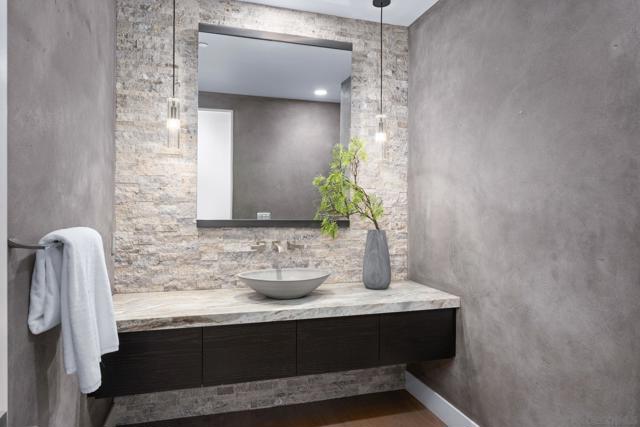 ~ Incredible Opportunity!~ Set above the Rancho Santa Fe Farms Golf Course, this Like-New & custom modern estate offers rare privacy, sophistication, and seamless indoor/outdoor living. Panoramic Views across six golf holes, the estate is filled with natural light and designed for five-star resort-level comfort. A wall of LaCantina-style bifold doors opens the vaulted Great Room to a covered outdoor living area, private pool/spa, fire pit & Summer kitchen, creating a seamless entertaining extension of the home. The gourmet kitchen features custom cabinetry, high-end Dacor appliances, Miele dual dishwashers and built-in coffee maker, walk-in pantry, nearby outdoor vegetable/fruit garden, and interior designer lighting chosen with a curator’s eye. Control4 technology, surround sound audio, Owned SOLAR, custom window treatments, and beautiful custom built-ins. The main-floor primary suite includes a walk-in closet and a spa-style bath appointed with refined finishes, offering a quiet retreat. Outdoor living is elevated by a German-engineered Algarve louvered roof with wind-rated shades, built-in heaters, full landscape lighting, irrigation, artificial turf, BBQ, and a beautiful water feature, all oriented toward the sweeping golf course views in the backdrop. Now this is a true modern sanctuary within The Farms, and one of its most rare and complete turnkey offerings.