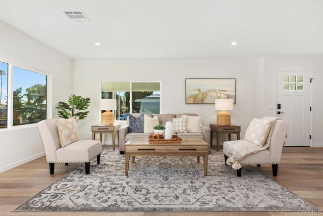 Steps to the Beach! Welcome to this beautifully renovated home in the exclusive 55+ gated community of Lakeshore Gardens. Ideally situated on a desirable lot with no home in front of it and within walking distance to the clubhouse and pool, and fountain views from the living room windows. This home is designed with the perfect blend of luxury, comfort, and coastal charm. Inside, you’ll find an open floor plan filled with natural light. The all-new kitchen features stainless steel appliances, quartz countertops, a 7-foot center island for meal prep and casual dining, plus an amazing walk-in working pantry and laundry center. Features built-in cabinets, butcher block counters and shelves. The living and dining areas flow seamlessly with the kitchen plus there is a cozy family room and a sun room—ideal for an office or den. The primary suite includes a spacious bedroom, a dreamy walk-in closet with a spinning shoe rack, a dual-sink vanity, and a large tiled walk-in shower. Additional upgrades include a new roof and skylight, furnace, A/C, fixtures, lighting, luxury vinyl flooring, and fresh interior and exterior paint. Enjoy the private back patio with low-maintenance turf or relax on the front deck with its tropical landscaping and peaceful view. Lakeshore Gardens residents enjoy resort-style amenities, including a clubhouse, pool, spa, sauna, fitness center, library, and a full calendar of classes and activities. Conveniently located near shopping, dining, entertainment, and the beach. Save money — not on tax rolls! This thoughtfully remodeled home is a rare find in the sought-after Lakeshore Gardens community. Don’t miss this incredible opportunity!