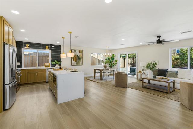 Beautifully redesigned 5 bedroom home featuring two en-suite bedrooms and high end designer finishes throughout. This professionally remodeled residence offers luxury vinyl flooring, a modern kitchen with waterfall countertops and new stainless-steel appliances, and updated bathrooms with custom showers and lighted niches. The open-concept layout is bright and inviting, and the bonus recreation room offers excellent potential for conversion to an ADU (buyer to verify). The second main bedroom also provides flexibility and could be configured as a granny flat or private suite. Thoughtful upgrades and cohesive design elements elevate the home’s overall appeal. Enjoy a large backyard perfect for outdoor living and entertaining. Located near parks, shopping, dining, and easy access to the 5 and 805 freeways. The seller has never occupied the property and has very limited knowledge of property condition or history. All measurements are approximate. Buyer's and Buyer's Broker/Agent should verify measurements and complete thorough inspections and investigations prior to Close of Escrow to satisfy themselves with the current condition of the property. Buyer(s) to verify and approve all data, reports, records, inspections, permits, MLS, HOA, if applicable and all information pertaining to the property prior to removal of contingencies. All contracts/offers are subject to seller approval and any offers or counteroffers by seller are not binding unless the entire agreement is ratified by all parties.