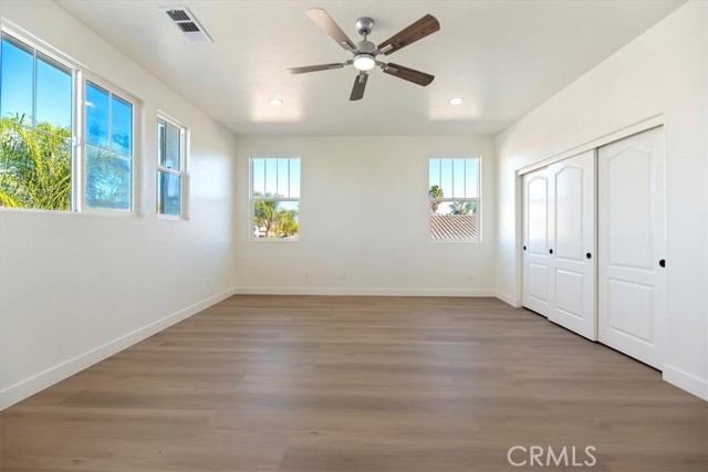 Welcome to this stunning 5-bedroom, 3-bath single-family home offering 3,042 sq ft of beautifully updated living space in a peaceful San Jacinto neighborhood. Built in 2005, this home has been completely renovated inside and out, delivering a true move-in-ready experience. Recent upgrades include new vinyl wood flooring throughout, brand-new kitchen cabinetry, new stainless steel appliances, new quartz counters throughout, updated electrical/plumbing fixtures and fresh interior/exterior paint. All bathrooms have been fully renovated with custom finishes, complemented by new fixtures throughout the home. The property features RV parking, newly installed turf in the front yard, and no rear neighbors, providing excellent privacy. With its thoughtful updates and modern finishes, this home feels practically brand new. A rare opportunity to own a fully renovated home in a fantastic, quiet neighborhood don’t settle for less when you can move right in and enjoy it all. Purchase the home down the street for 555k with no updates or for slightly more purchases this beautifully renovated home. Priced to move quickly.