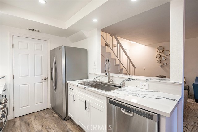 Updated two-story condo ideally located on the La Verne border in one of Pomona’s most desirable areas. This home offers an exceptional location with easy access to Downtown La Verne, shopping, dining, and transportation. The interior features a remodeled kitchen, updated flooring downstairs, and a bright living area with a gas fireplace. Both bedrooms are located upstairs, including a primary suite with a walk-in closet and large shower, plus a second bedroom with a built-in closet organizer. Laundry is conveniently located in the upstairs hallway. The home includes a private patio and an attached two-car garage with additional storage and built-in countertops, ideal for extra prep space or overflow storage. Community amenities include a pool, and the HOA covers water and trash. Located approximately half a mile from the Metrolink station, this property offers excellent commuter access. This home qualifies for multiple first-time homebuyer loan programs, including options with low down payment. Ask about available buyer assistance programs.