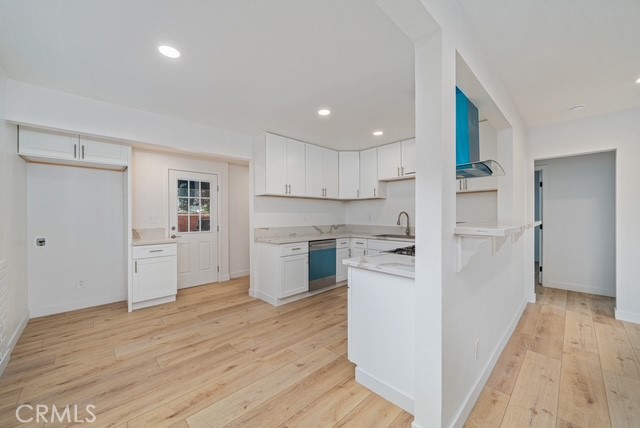 Welcome to this beautifully remodeled single-family residence offering 3 bedrooms and 2 bathrooms across 1,101 SqFt of thoughtfully updated living space situated on a 5,206 SqFt lot. The spacious primary bedroom features a private en-suite bathroom creating a comfortable living experience. This home has been extensively upgraded with new recessed lighting, updated flooring, new doors, and fresh paint. The remodeled kitchen is a true highlight, featuring new cabinetry, modern countertops with stunning warm-toned veining, and new appliances complemented by warm flooring that flows throughout the home. Both bathrooms have been tastefully renovated, with the en-suite showcasing elegant warm-toned tile and luxurious gold plumbing fixtures. Modern design elements are found throughout, including sleek black hardware and stylish ceiling fans, blending contemporary style with inviting warmth. Move-in ready, thoughtfully designed, and ideally located to 3 major FWYs; this home offers the perfect balance of modern finishes and cozy charm.