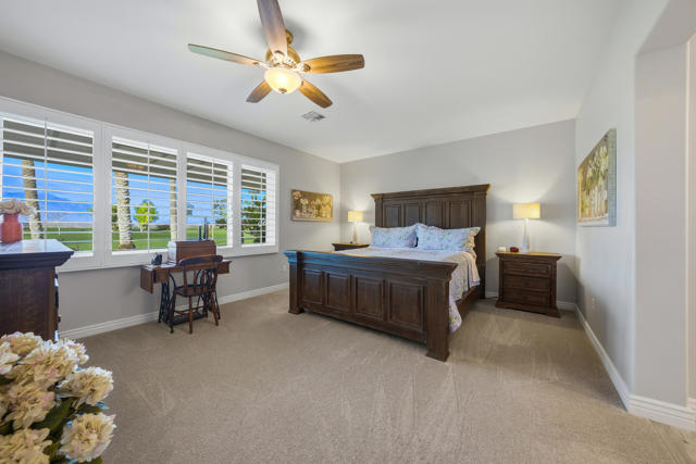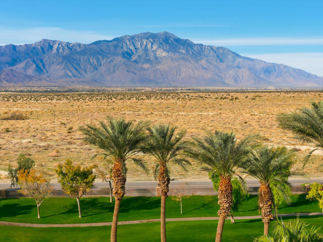 55+ Sun City Palm Desert--The 'best value'' for an active retirement community in the entire Coachella Valley. This is the most popular St. Croix model with 2 beds/2 full baths w walk-in showers, plus a DEN/HOBBY/FLEX room and an air conditioned golf cart garage. Spectacular golf course, sunset & mountain views!!! GREAT location. Stunning curb appeal features stacked stone wainscoting and desert landscaping with updated irrigation system and landscape lighting. ALL NEW EXTERIOR PAINT AND WINDOWS. NEW AC. NEW HVAC SYSTEM. COMPLETE REMODEL INCLUDES: ALL NEW CUSTOM CABINETS THROUGHOUT. CUSTOM PLANK FLOORS. NEW PLANTATION SHUTTERS throughout. Kitchen features ALL NEW KITCHEN TOP OF LINE STAINLESS APPLIANCES. The living room features a Cinematic Experience professionally installed and integrated with top of line amplifiers and sound system. The Primary bedroom is spacious, has a designer barn door concealing an EXTRA OVERSIZED WALK-IN CLOSET. Double vanity AND CUSTOM WALK IN SHOWER. Guest bedroom has fan/light,. Guest bath in hallway offers a CUSTOM WALK IN SHOWER. The famous DEN/HOBBY room is perfect for a TV room, office, workout room, and an extra guest space WHICH OFFERS A BUILT IN OFFICE. The laundry room is inside, has cabinets and sink, washer and dryer are included AND TOP SHELF. Garage is extended has TESLA CAR CHARGER, extra fridge and AC. Perfect for relaxing and/or entertaining with family and friends for the holidays! ''Buy Where you Love to Play...Sun City Palm Desert!'' ONE OF A KIND. PERFECTION.