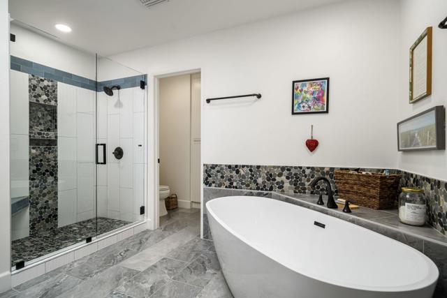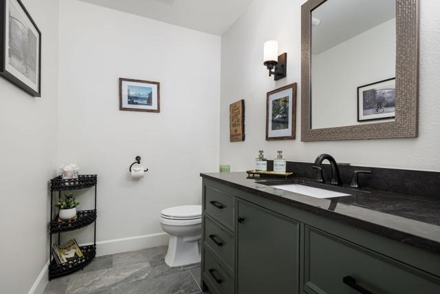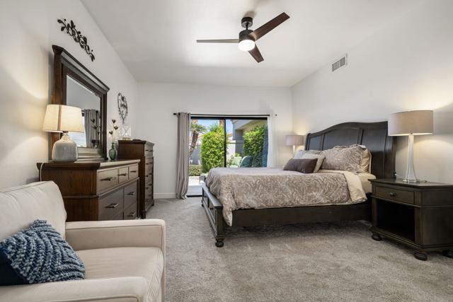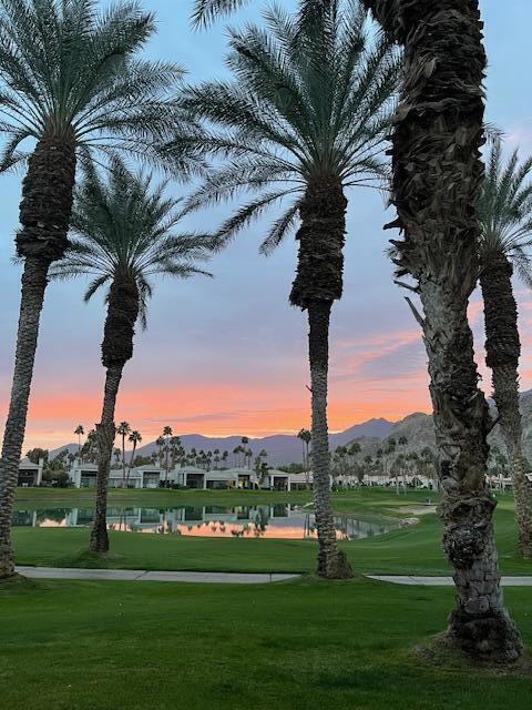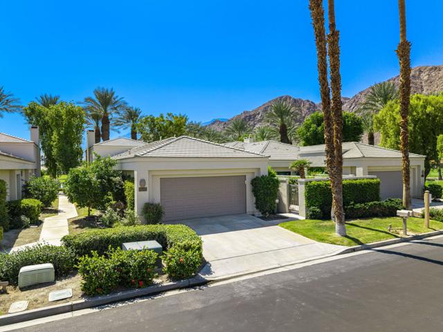 Views, views, views! This home offers stunning panoramic views of the Santa Rosa Mountains, beautiful lake and 4th fairway/green of the Palmer Private Course. With the gorgeous view and 3 bedrooms, all with their own en-suite bathrooms plus a powder room, just relaxing or entertaining are both a breeze.This gorgeous home has recently had a complete top to bottom remodel to include new appliances, new flooring throughout, new or upgraded bathrooms and all new baseboards and paint. The kitchen has been upgraded with granite countertops and designer backsplash. The original fireplace was removed and replaced with a stylish electric fireplace insert and floor to ceiling stone backdrop for a beautiful focal point in the living room. This beautiful home is one of the best quiet and peaceful locations on the Palmer course! Morning coffee or evening cocktail on the patio is the best! Community pool & spa just steps away. Offered Partially Furnished including Golf Cart.