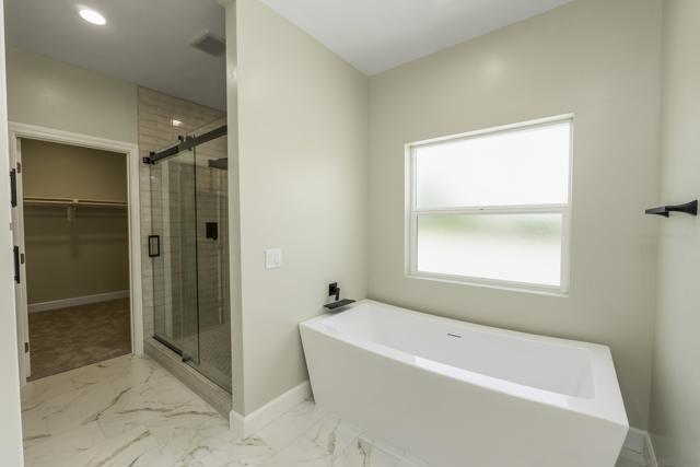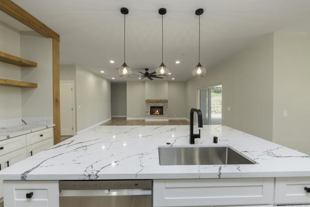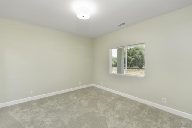 Stunning 2024 Custom-Built Home on 4.52 Acres with Solar + ADU Potential! Welcome to this beautifully designed 5-bedroom, 3-bath home. Offering 2,893 sq ft of living space and an attached 1,100 sq ft oversized 4-car garage—perfect for a workshop, storage, or both—this home blends comfort, utility, and expansion potential. Enjoy 9-foot ceilings throughout, a spacious open-concept layout, and a large kitchen with a generous prep island, breakfast counter, and a cozy coffee nook complete with wood surround and floating shelves. The luxurious master suite features a freestanding soaking tub, oversized shower, and an extra-large walk-in closet. Two of the bathrooms include dual sinks for added convenience. A dedicated laundry/mudroom with sink, cabinets, and counters connects directly to the garage for functional everyday living. The 4.52-acre lot includes a flat pad above the home—ideal for building one or more ADUs, a stable, or corral. Potential rental income could even cover your mortgage! The front yard is equipped with 3 standpipe hose bibs, offering water access for a future vineyard, garden, or animal setup. Built to current 2024 codes, the home features an OWNED SOLAR system with battery backup. Six critical circuits—including the kitchen—stay powered in an outage, and the system is easily expandable for even greater energy independence. This property is the perfect blend of rural flexibility and modern convenience—don’t miss it!