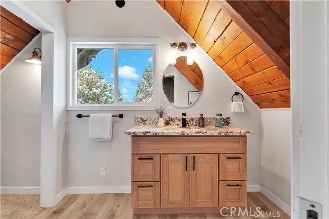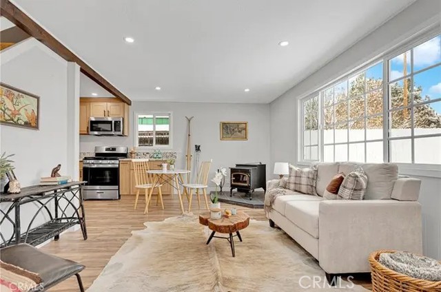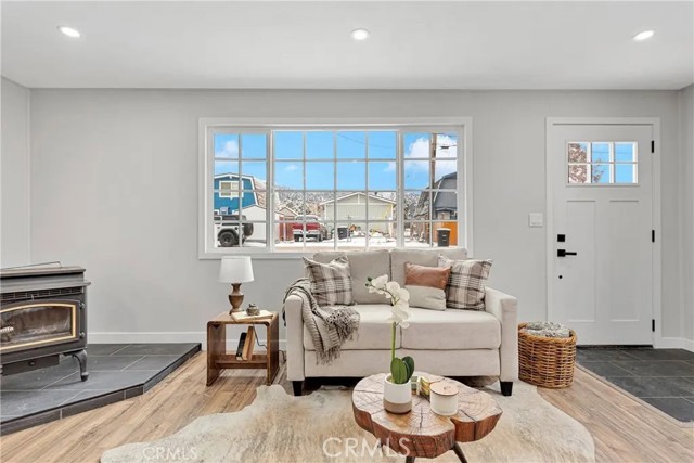 The perfect comfort space in the midst of Big Bear's winter wonderland! Welcome to your completely remodeled cabin in the mountains. Two bedrooms and bathrooms, a thoroughly modernized interior and a large back patio to enjoy the charms of life away from it all. It gets even better in the details, with a pellet stove to warm yourself and gorgeous new cabinets and floors. Tenant occupied until May 1, 2026. Come discover this beautifully redone gem in the heart of California's resort paradise!
