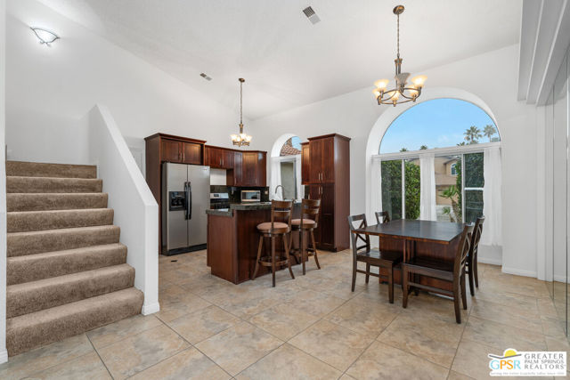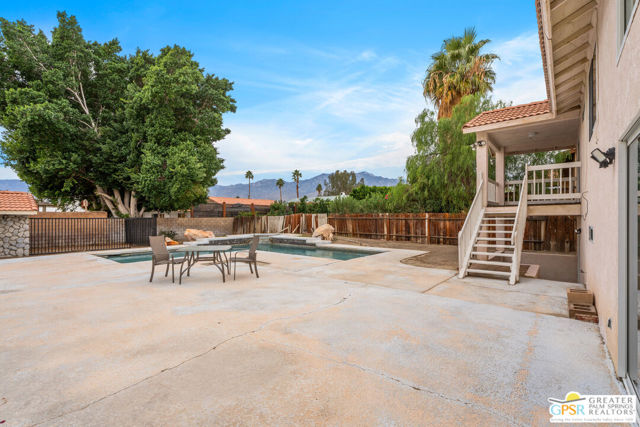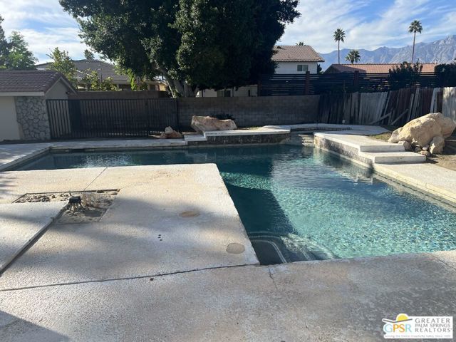Set in the middle of the Coachella Valley's famous Candy Cane Lane is a perfect 3 bed, 2 bath split level home. The kitchen has granite countertops and stainless steel appliances. There's access to the large L-shaped pool and spa from the living room, upstairs bedroom deck and the master bedroom patio. The attached 2-car garage is actually big enough for storage on both sides. You'll be close enough to walk to Panorama Park for baseball, tennis and soccer. Panorama Park also has walking paths and a playground. Simply because you're on Candy Cane Lane, the street is highly desirable (within the city) due to its built-in sense of community and festive holiday spirit. This is a wonderful opportunity for first-time buyers, an investor, or anyone looking for a centrally located home in a friendly neighborhood.