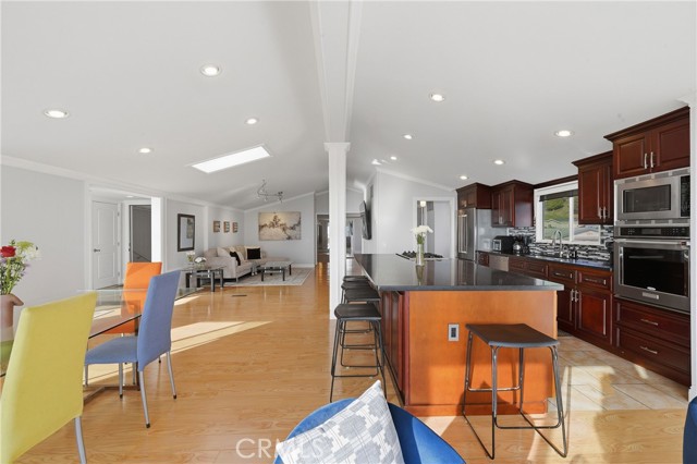 Spacious and beautifully updated home in the prestigious 55+ Palos Verdes Shores community—ideal for downsizing without compromise. Large living areas, oversized bedrooms, abundant closet and storage space, a generous open kitchen with ample cabinetry, and a dedicated laundry room provide comfort and ease in a single level. Enjoy 180-degree ocean and Catalina Island views with both sunrise and sunset from the private deck. Resort-style amenities include a heated pool and spa, BBQ, social and entertainment clubhouse, private 9-hole golf course, gym, theater, pickle-ball, tennis courts, dog park, and scenic bluff trails.