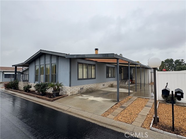 Triple wide Kaufman & Broad modular home located in side the Lake Park Sobaba Springs 55+ mobile home park. This home features 2 bedrooms, 2 full bathrooms, family room with bar, living room with fire place, full size kitchen, full landscaped back yard and a carport for 2 cars.
