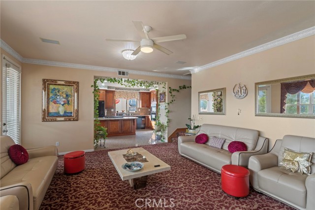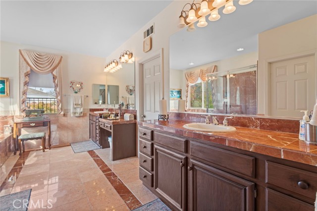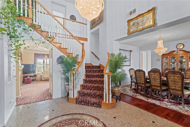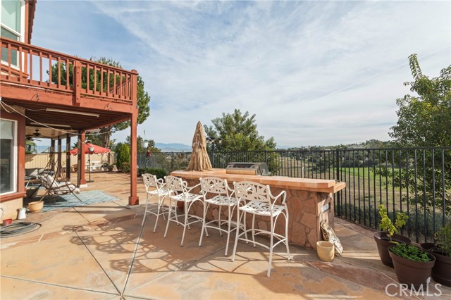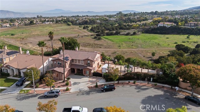 Situated in the scenic green foothills of South Corona, this expansive home offers nearly 4,000 sq. ft. of living space on an over half-acre lot in one of the area’s most desirable neighborhoods. With no rear neighbors, enjoy breathtaking mountain views and exceptional privacy year-round. There are 5 bedrooms upstairs and a full bedroom and bathroom on the main level provide excellent flexibility for guests or multigenerational living. The grand entry welcomes you with a dramatic foyer and chandelier, leading to a formal living room with fireplace and a formal dining room perfect for entertainment. The open family room connects seamlessly to the kitchen and breakfast nook, featuring a center island with countertop seating and ample storage. A dual staircase enhances both function and flow. Upstairs offers a thoughtfully designed layout, including Jack-and-Jill bedrooms and a spacious primary suite with a private balcony, ideal for enjoying panoramic mountain views. An additional main-level office or flex space with attached bath includes private access to both the front and backyard, making it ideal for a home office, studio, gym, or potential guest space. Outdoor living truly shines with a large, covered patio, BBQ island with sink and stove, and expansive yard space perfect for gatherings or relaxation. The property also includes a large double-door RV gate with ample parking for an RV, boat, or additional vehicles, plus a tool shed for extra storage. Additional highlights include dual A/C units and exceptional lot size, offering both comfort and functionality in a prime South Corona location. Close to schools, park and other amenities. Low HOA and taxes.