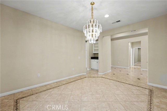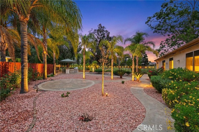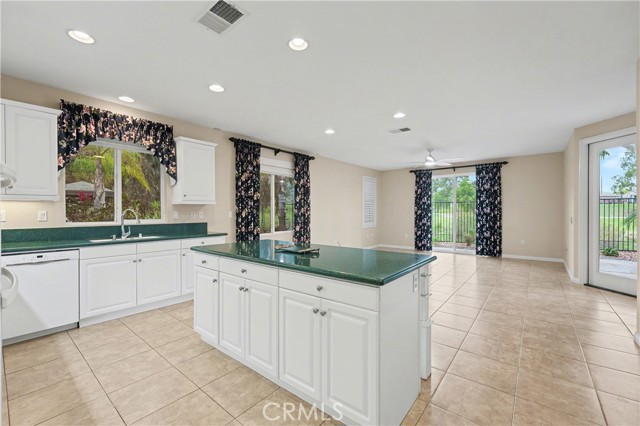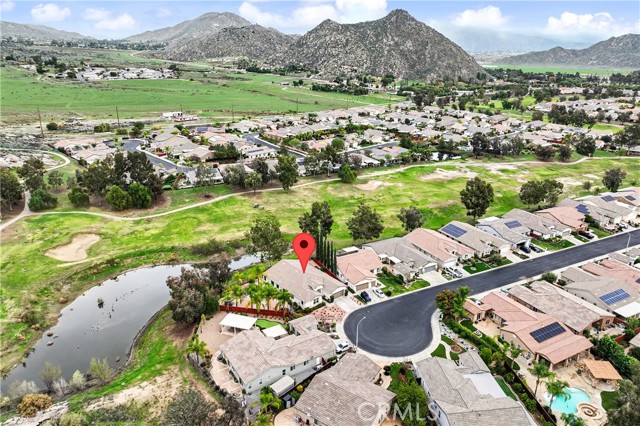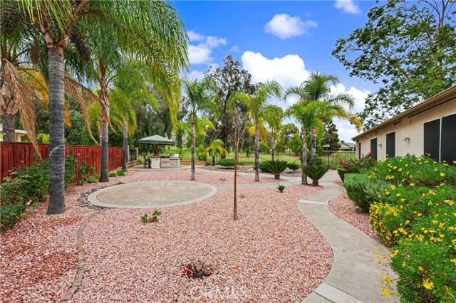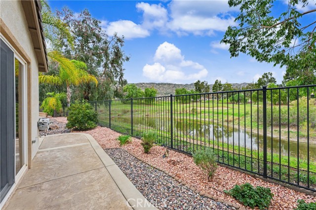 Highly upgraded and exceptionally well cared for, this stunning 55+ residence is located in the gated Four Seasons Hemet, tucked away near the back of the community, on a quiet cul-de-sac and backing directly to the golf course. This desirable large model offers over 2,755 square feet of thoughtfully designed living space on an expansive 10,890 sq ft lot, blending comfort, privacy, and elevated indoor-outdoor living. From the moment you enter, vaulted ceilings and an open-concept layout create a sense of space and flow, filling the home with natural light and an inviting, airy atmosphere. The spacious kitchen is open to the family room, making it ideal for both everyday living and entertaining. Featuring a center island, abundant cabinetry, recessed lighting, and beautiful appliances, the kitchen seamlessly connects to the main living areas, which lead out to the backyard beyond. The primary suite offers a peaceful retreat with direct access to the backyard and a well-appointed en-suite bathroom with dual sinks, soaking tub, walk-in closet, and generous storage. Two additional bedrooms provide flexible space for guests, hobbies, or a home office, with nearby bathrooms featuring walk-in showers and clean, functional design. The backyard is an entertainer’s delight, designed for both gatherings and quiet enjoyment. Highlights include attractive custom landscaping and concrete paths, a built-in BBQ area, dedicated dance floor, covered patio, and unobstructed golf course views, creating a private and spacious outdoor setting that truly sets this home apart. Residents of Four Seasons enjoy resort-style amenities including a clubhouse with restaurant, ballroom, library, recreation center, tennis courts, pool and spa, indoor and outdoor lounges, and an active calendar of social events. Conveniently located near shopping, dining, and major commuter routes, this home offers a refined lifestyle in one of Hemet’s premier 55+ communities