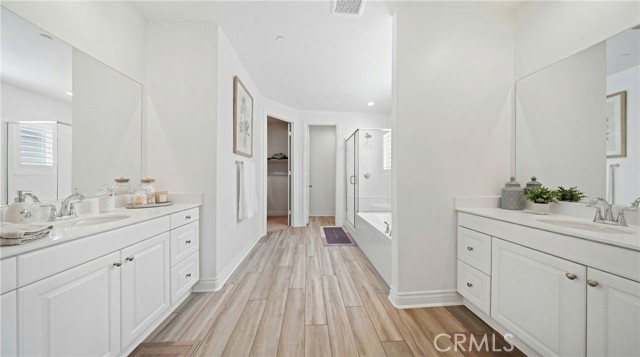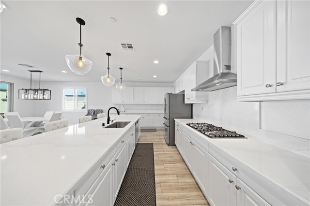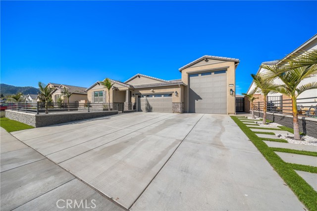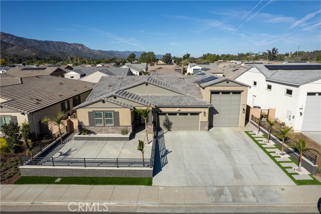 Gorgeous Single Story Craftsman Style Home That Has Never Been Lived In And Is Truly Better Than New. This Stunning Entertainer’s Dream Was Built In 2022 By The Highly Acclaimed Richmond American Home Builders And Is Located In The Highly Sought After Homestead Community In Wildomar. Every Detail Of This Home Reflects Exceptional Craftsmanship And Pure Class, Beginning With The Custom Front Entrance Featuring Wrought Iron Gates And Elegant Stone Veneer Accents. Professionally Landscaped And Hardscaped With Custom Lighting And Low Maintenance Turf, This Home Offers Outstanding Curb Appeal. Inside, You Will Find A Spacious Open And Airy Floor Plan Offering Approximately 2,540 Square Feet Of Living Space, Including Three Generously Sized Bedrooms, Two Full Bathrooms, And A Convenient Powder Room. The Primary Suite Is A Luxurious Retreat Featuring A Soaking Tub, Separate Stall Shower, An Expansive Walk In Closet, And A Beautiful Neutral Color Palette Throughout. Interior Highlights Include Rich Upscale Wood Laminate Flooring, Plush Carpet, Custom Shutters, And Central Heating And Air Conditioning. The Chef’s Kitchen Is Warm And Inviting With Stainless Steel Appliances, Gorgeous Quartz Countertops, Abundant Cabinetry, Recessed Lighting, Upscale Light Fixtures, And An Instant Hot Water Heater. The Indoor Laundry Room Offers A Sink And Additional Storage For Added Convenience. Step Outside To An Entertainer’s Dream Backyard Complete With A Full Alumawood Covered Patio, Custom Landscape And Hardscape Design, Stone Veneer Accents, And Vinyl Fencing That Is Ideal For Relaxing Or Hosting Gatherings. The Garage Space Is Exceptional With A Two Car Garage Plus A Massive Pull Through RV Garage Measuring Approximately 14 Feet 6 Inches By 45 Feet. Additional Features Include 12 Fully Paid Off Solar Panels For Energy Efficiency. This Is A Rare Opportunity To Own A Practically Brand New Highly Upgraded Single Story Home In A Desirable Community. You Do Not Want To Miss It.