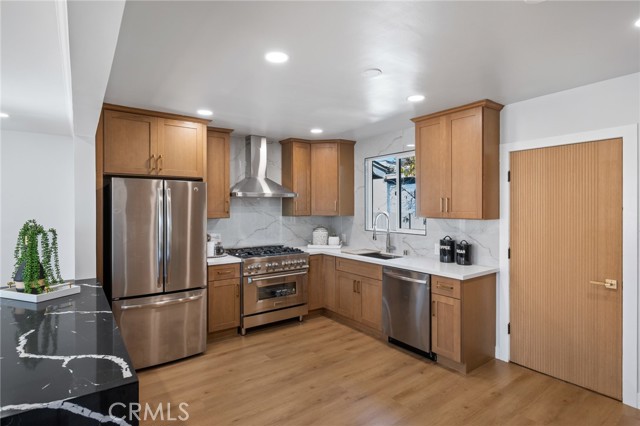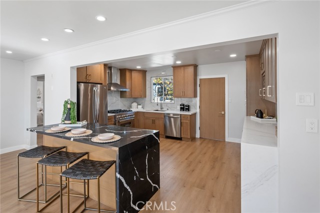 Located in the highly sought after Palisades neighborhood of San Pedro, this fully remodeled 4 bedroom, 3 full bathroom home offers stunning ocean and Catalina Island views with a layout designed for comfortable living. Perched high above the street level, the entry is lined with stylish custom wood panels and opens to the dining room with fireplace and gourmet kitchen. The kitchen features a beautiful wide open island, new cabinetry, porcelain backsplash, stainless steel appliances including ZLINE stove/microwave, wine cooler, bar area, and other custom touches! The main level also features 2 bedrooms and a fully remodeled bath. Step out to the spacious backyard, which was fully recreated with new concrete, grass, landscaping, and a gazebo perfect for entertaining. The upper level is where the views really hit! Large living room with multiple windows facing the ocean and a balcony with additional outdoor space. This level also features a designated laundry room, remodeled guest bathroom and a primary ensuite that is straight out a designer magazine! Considerable closet space along with additional walk in closet, full bath and views of Catalina from the primary bedroom. Some of the many other features include new white oak solid-core doors with coordinating black hardware, new timberline charcoal cool roof, custom closets, vinyl flooring throughout, 50 gallon water heater, recessed and custom lighting, fresh exterior/interior paint, 240v electrical panel, etc. The oversized 3 car garage is equipped for EV charging and provides plenty of parking, storage, and a basement area that can be used for additional storage space. Bright, open living spaces create an ideal environment for both everyday living and family gatherings, while the home’s elevated setting delivers cool ocean breezes and unforgettable sunset views. The flexible floor plan allows room for growing families, guests, or a home office. Located just one block from historic Paseo Del Mar and a short stroll to the neighborhood Corner Store, Pt. Fermin Lighthouse, nature preserve, walking trails, and the iconic Korean Bell. Pack your bags and move right in!