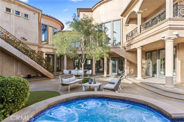 Truly, an outstanding opportunity for this meticulously maintained Mediterranean style custom residence located within the highly prestigious & coveted “Oceanfront,” 24 hr. guard gated community of Ritz Cove. This impeccable 7200 sqft residence contains 5 bedrooms, 8 bathrooms, a two-story entry foyer showcasing a beautiful circular staircase, 3 fireplaces, an in-home theater, a 3rd story viewing deck with “dumb waiter” access. The main floor of the residence has impeccable "Crema Marfil' marble flooring throughout & offers a main floor office, 2 additional bathrooms, a main floor ensuite bedroom, generous breakfast/ family dining, & an outstanding family room with custom built-ins & fireplace. Contiguous to the family room a stunning bar area with wine storage & direct access to the ‘Resort Style” backyard with BBQ area, spa & pool inclusive of water feature, gas fire pots & outdoor staircase to the 2nd floor of the home!! This floor plan is absolutely “open and spacious” as well as “light & bright!” The Center Island, gourmet kitchen, features custom cabinetry, counters & back splashes of Marmot Belgia Calcutta Marble, 6 burner Viking range, subzero refrigerator/freezer, 3 dishwashers, & built in coffee maker! The gracious Primary Suite contains a sitting area, dual sided fireplace, coffee bar area with sink & refrigerator, 2 exceptional walk-in closets with custom cabinetry, a luxurious Primary bath suite with "Iceberg Blue Quartzite' multiple head steam shower, soaking tub & 3 vanity areas. All ancillary bedrooms offer oversize walk-in closets. Additional upgrades include an upstairs laundry room with 2 washers & dryer sets & built in storage, central AC & vacuum system, newer water softening system & water heater, Home Guardian Security Cameras, RING doorbell & cameras, Control 4 Smart Home System for TVs, heating, lighting, & music! This “end of cul-de-sac” residence features a “gated auto driveway,” finished oversize 3 car garage with an abundance of storage options. The manicured grounds are extremely private & an entertainer’s dream. The Ritz Cove community provides a “private gated” entrance to the walking/bicycle path along the Pacific Ocean including direct beach access! Located contiguous to the Ritz Carlton Resort & minutes away from Dana point Harbor & Lantern District featuring numerous dining & shopping options. This is absolutely “a must see “property for any Purchaser in this price range & a 10 out of 10!