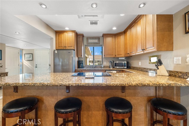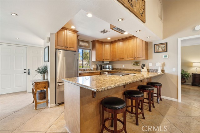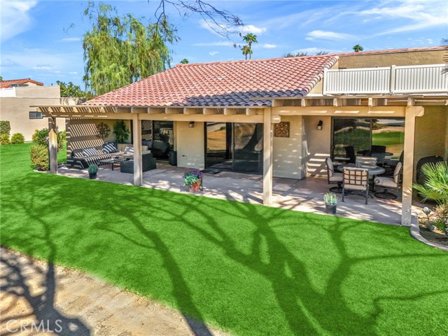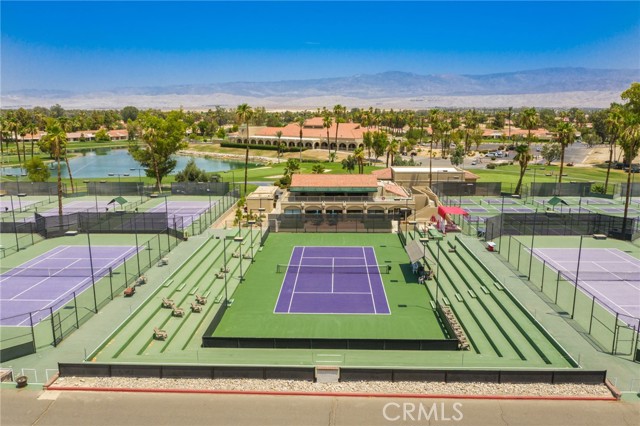Welcome to Palm Desert Resort Country Club, aka “The Resorter,” a premier 24 HR Guarded/Gated community nestled between the Santa Rosa and San Jacinto Mountains. Prime Resorter location lot sits high above the others with spectacular commanding mountain, lake and tee to green views. This highly upgraded south-facing town home is designer perfect throughout. Pack your bags as this home is offered completely turn-key for immediate enjoyment. The unit offers (2) very private en-suites with a high soaring cathedral ceiling living room between and enjoys a very open concept floor plan. Your custom kitchen has Montal Co. maple cabinets, brand new stainless appliances, stone countertops and a large peninsula with bar stools. Patio access from all rooms with newer Alumawood covered patio cover that does not need any maintenance for years to come. Attached 2 car garage has direct access to home and tons of storage throughout. The Resorter is well known for its abundance of amenities boasting a Championship semi-private 18-hole golf course, driving range, one of the largest Pickleball facilities in the valley with 28 courts, tennis, (note additional membership available for Pickleball/Tennis and several golf packages) 20 pools and spas, enormous clubhouse with dining and I am told the chef is fabulous, huge pro shop, separate café, bocce ball and lakes. All this and centrally located with quick convenience of the 10 freeway, World Class Golf, Tennis, Acrisure Arena, Casino’s, El Paseo and so much more. NOTE: HOA includes internet and TV! The Resorter HOA allows short-term rentals with city permit and this unit has a very profitable history of income if you choose to rent. Do not miss out on this incredible opportunity to embrace the Palm Desert lifestyle – schedule your viewing today and make this desert oasis your own! Brand new garage door opener.