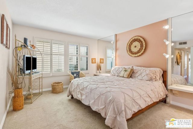 Wake up to sweeping fairway views in this highly desirable 300 plan located in Rancho Las Palmas Country Club in the heart of Rancho Mirage. This 3-bedroom, 2-bath home overlooks the 5th and 6th fairways of the North Course, offering a serene desert golf backdrop from the moment you step inside. Vaulted ceilings and abundant natural light enhance the open living spaces, while the remodeled kitchen shines with granite countertops, updated cabinetry, stainless steel appliances, and recessed lighting perfect for entertaining or relaxed everyday living. A charming interior atrium brings the outdoors in, creating a peaceful retreat at the center of the home. The pool and spa are conveniently located just across the street, and The River shopping center is right outside the gates, with popular restaurants, boutiques, and a movie theater just steps away. This is true desert resort living at its best don't miss the opportunity to experience it in person. Some kitchen photos are digitally altered using AI to show planned new tile flooring; actual finishes may vary.