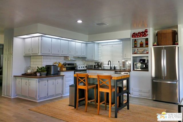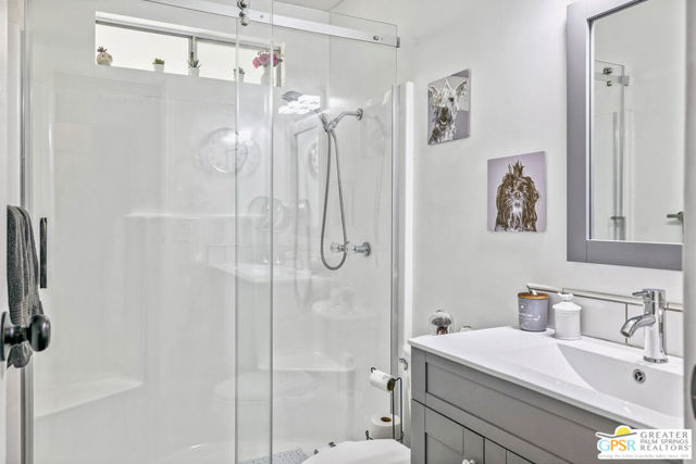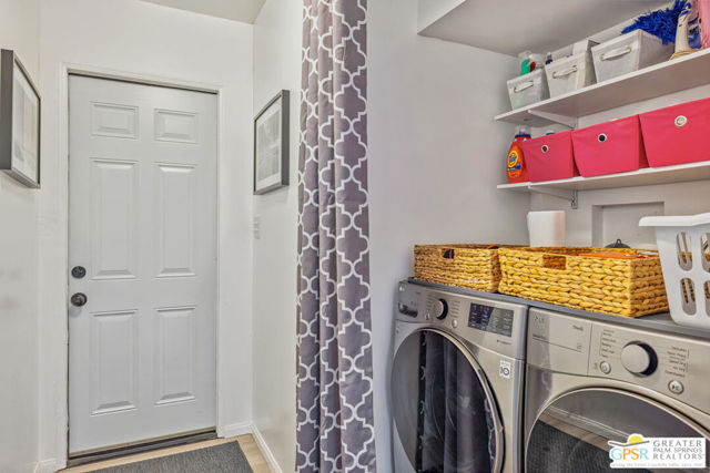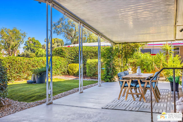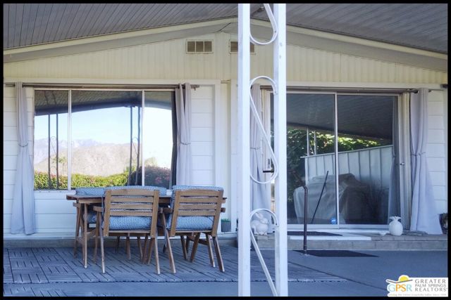Welcome to a premier Active Adult (55+) desert lifestyle in this beautifully updated home located directly on the golf course within the highly sought-after, guard-gated Date Palm Country Club community. This 1,440 square foot residence offers two bedrooms (Primary includes walk-in closet) and two bathrooms, along with a host of modern upgrades/home features. Notable improvements include: drywall throughout (even the ceilings), new laminate flooring, new kitchen counters, sink, all appliances (that includes a convection stove and composter), remodeled bathrooms with walk in showers that are tastefully tiled. Inside laundry area includes upgraded front load washer/dryer units. This home is a MUST SEE to fully appreciate. Being offered furnished with 2 Big Screen (75" and 50") TVs. Enjoy also interior upgrades of designer lighting in both bedrooms plus recessed lighting in great room. The covered patio in back provides spectacular, unobstructed mountain, golf and water feature views. Additional landscaping and irrigation has been added. The lot includes fruit bearing trees of fig, lemon orange and tangerine. A surprise awaits of a drywalled shed, wood flooring, with window (plus portable AC/heater unit) that doubles as an office. As a resident, you'll have access to an array of country club amenities, including an 18-hole executive golf course (with reduced rates and packages for residents), an on-site restaurant, a main clubhouse with a pool and spa, a sports pavilion with tennis and pickleball courts. Several satellite pools and spas throughout the community, as well. There is even a dedicated dog park. The community is centrally located, offering convenient access to the best of Palm Springs, Cathedral City, Rancho Mirage, and Palm Desert. The park is secured with a guard gate from 6 a.m. to 10 p.m. and a security pass-enabled back gate for easy entry and exit. Make this desert home, YOUR HOME. Come See, Make Offer. You will NOT be disappointed.