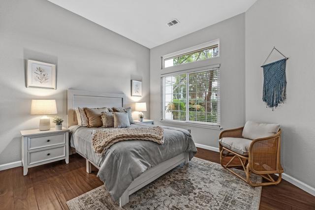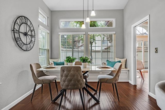 RARELY available gorgeous SINGLE-LEVEL corner-unit townhouse offering exceptional privacy & effortless living in a highly sought-after community. Spacious living areas feature soaring ceilings w/ an abundance of natural light, charming fireplace adds cozy ambiance, separate dining area w/ custom window seating built with hidden storage. Highly updated kitchen & baths showcasing designer-grade materials. Generous primary bedroom includes a restful sitting area retreat for reading or unwinding at the end of the day. The attached garage offers direct access to the home, You’ll also enjoy convenient inside laundry. See list of property upgrades in disclosure package. Extra-large private patio spaces, perfect for morning coffee, outdoor dining, or relaxing with friends. Located just minutes from historic downtown Pleasanton, w/ a wide variety of restaurants, boutiques, coffee shops, & local favorites. The neighborhood comes alive year-round w/ community events including summer concert series, weekly farmers market, wine strolls, beloved hometown holiday parade and more. A rare opportunity to enjoy single-level living, modern updates, and a vibrant Pleasanton lifestyle!