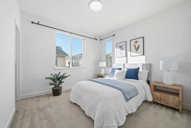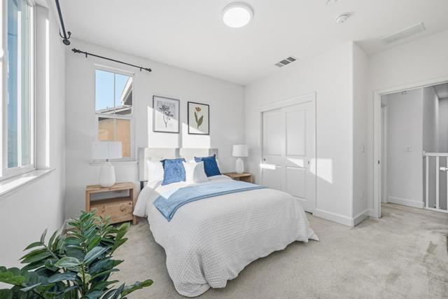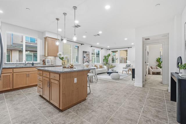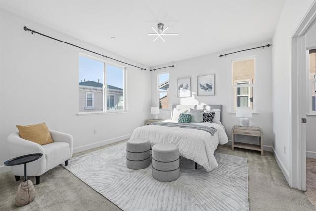 Beautifully updated 3-bedroom, 3-bath home offering an open and airy floor plan with high ceilings and abundant natural light throughout. Each bedroom features its own full bathroom, providing privacy and flexibility for families, guests, or rental use. The modern kitchen is thoughtfully designed with granite countertops, a large center island, stainless steel appliances, ample cabinet storage, and recessed lighting. Additional highlights include central air conditioning and heating, in-unit laundry, recessed lighting throughout, walk in closet, and a private patio ideal for outdoor relaxation or entertaining. Low HOA dues cover trash service, roof, common area insurance, and maintenance. Conveniently located near BART, 0.7 mile to Great Mall, top-rated schools, shopping, dining, and upcoming retail developments, with easy access to major freeways and nearby high-tech employers. No rental restrictionsan excellent opportunity for both owner-occupants and investors seeking long-term value.