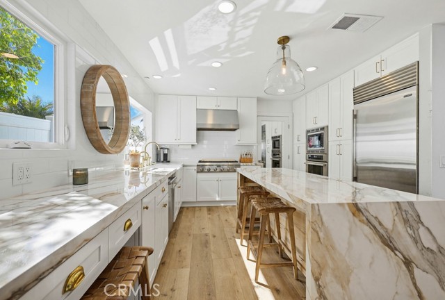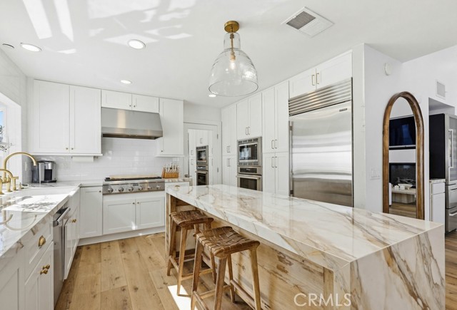 Nestled on a quiet cul-de-sac within the prestigious guard-gated community of Marblehead, this beautifully updated 3-bedroom, 2-bath home offers refined coastal living with thoughtful upgrades throughout. Enjoy peek-a-boo ocean views from two bedrooms, enhanced by upgraded windows and sliding doors that bring in abundant natural light.The newly renovated kitchen is a standout, featuring sleek countertops, a Sub-Zero refrigerator, Thermador gas cooktop and dishwasher, and a layout designed for both everyday living and entertaining. Recent improvements include a newly added A/C unit, whole-house water filtration system, full PEX repipe, tankless water heater, and a new electric panel, offering peace of mind and modern efficiency.Step outside to newly updated front and back yards, ideal for relaxing or hosting, while the garage impresses with epoxy-coated floors for a clean, finished look. This turnkey home blends luxury, comfort, and location—just minutes from beaches, shopping, dining, and top-rated schools. Shown by appointment only schedule a tour today!