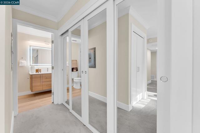 Discover this exquisite, modern, luxury-renovated condo nestled within Rossmoor's vibrant 55+ community, boasting a generously sized 1407 sq ft of living space. This stunning property features two comfortable bedrooms and two beautifully appointed bathrooms. The primary bedroom is a true sanctuary, offering not one, but two closets, including a spacious walk-in closet. Beyond the practical, prepare to be captivated by a brand-new, breathtaking kitchen, complete with a huge, functional pantry and a suite of stainless steel appliances, designed for both elegance and efficiency. Brand new dual-pane windows offer a unique "treehouse" feel, framing breathtaking views of the majestic redwoods. Convenience is key with included parking and extra storage, making everyday life seamless. Indulge in the exceptional amenities that Rossmoor has to offer, including golf, swimming, tennis, pickleball, scenic hiking trails, a dedicated dog park, and a myriad of social clubs, ensuring an active and fulfilling lifestyle for all residents.